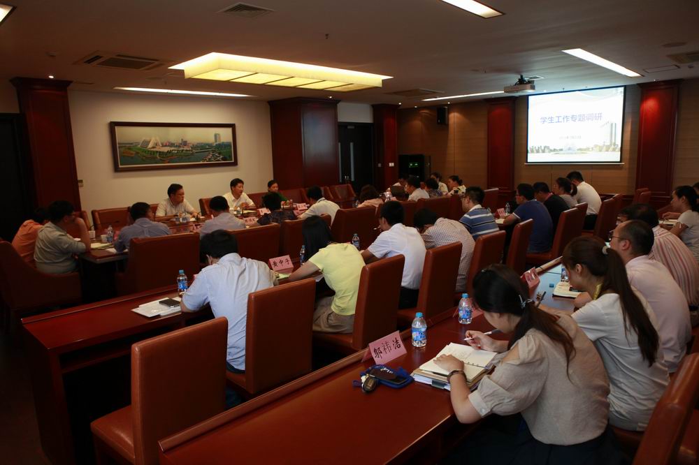 7月21日上午,校党委书记李江调研了学生工作部(处)、研究生工作部(处)、团委的学生工作开展情况,校党委副书记裴小倩、党办主任王陈出席了调研会。