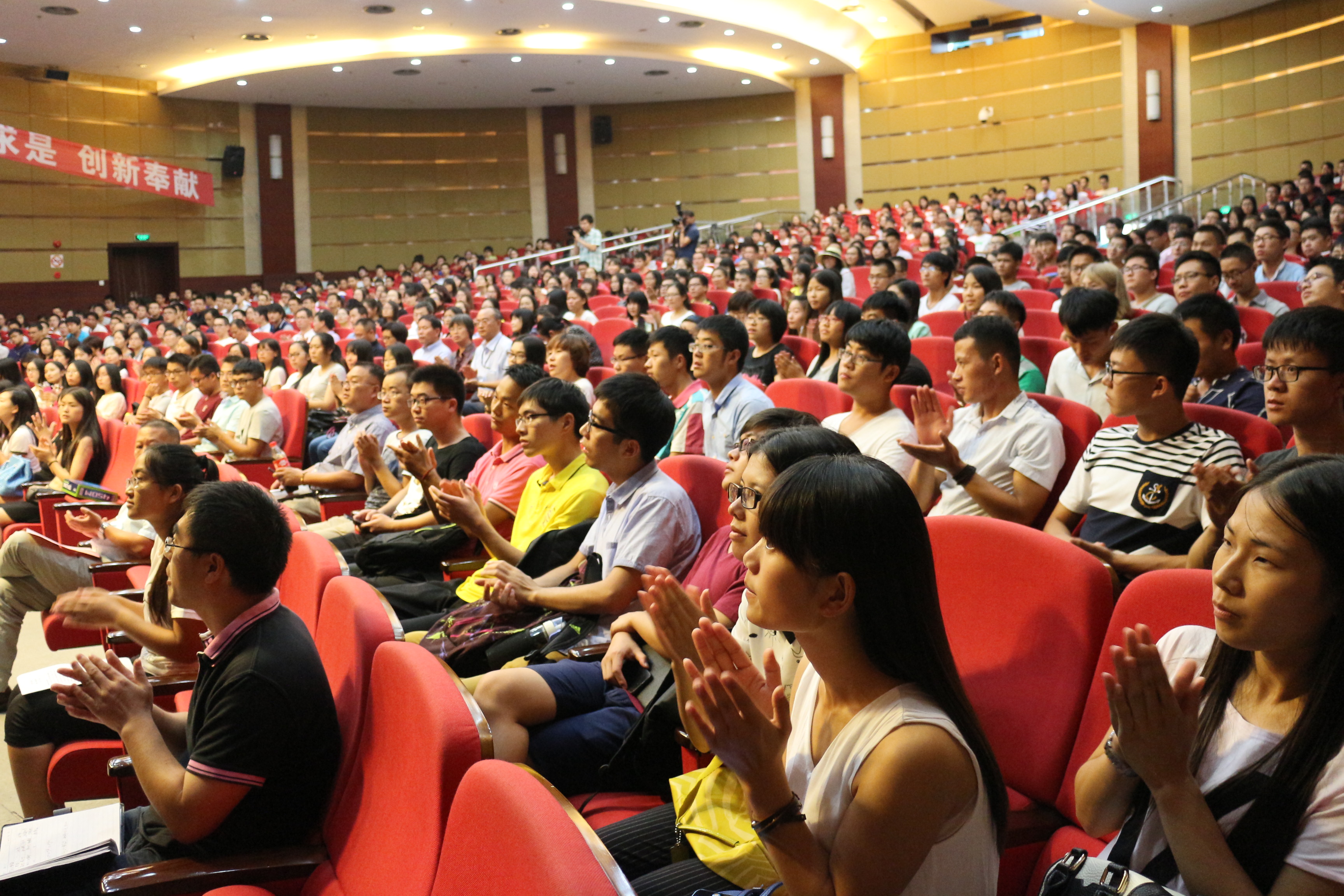 9月14日下午,我校在志宏堂隆重举行2015级硕士研究生开学典礼。校党委副书记夏斯云、校党委副书记兼副校长裴小倩、副校长姚秀平出席了开学典礼。各研究生培养学院党政领导、研究生部(处)等处室负责人、研究生导师代表、研究生辅导员、研究生秘书和全体2015级近600名研究生新生参加典礼,开学典礼由副校长姚秀平主持。