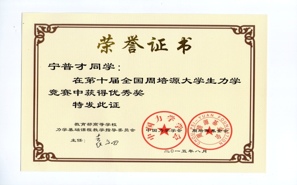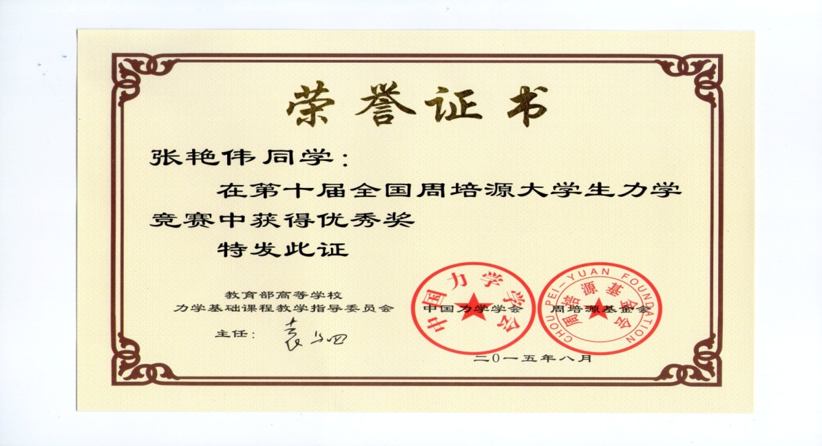 9月17日,2015年第十届全国周培源大学生力学竞赛的结果公布,我校三名学生喜获全国优秀奖及上海市二等奖,他们是机械学院学生宋杰(11113322)、汽车学生张艳伟(61512240)、宁普才(61512129)。