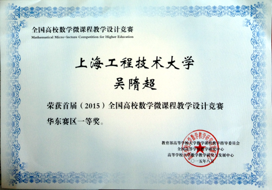 近日,首届(2015)全国高校数学微课程教学设计竞赛评选结果揭晓。基础教学学院数学教学部吴隋超老师的作品《定积分的定义》和刘瑞娟老师的作品《条件概率的定义》获得大赛华东赛区一等奖。据悉,此次竞赛,华东赛区共有568件有效参赛作品,其中上海市获得赛区特等奖3件,一等奖6件,二等奖10件。
