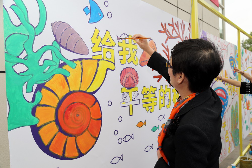 本次涂鸦采用“秘密花园”绘本图案形式,分为涂鸦区、展示区、礼品区三个区域,包含“因我们一起分担,所以不是问题”、“给我平等的机会,我会一样好”、“缺少我的参与,就少了一般色彩”、“我没有你力气大,但一样有才能”四个主题。活动现场,来自艺术设计学院的20余位学生挥毫创作,用绚丽的色彩勾勒出流动的线条,彰显出男女平等的时代理念。此前我校师生特别是艺术设计学院师生参加了男女平等的微博话题讨论活动,并提交了60多副涂鸦作品描述“你眼中的男女平等”。