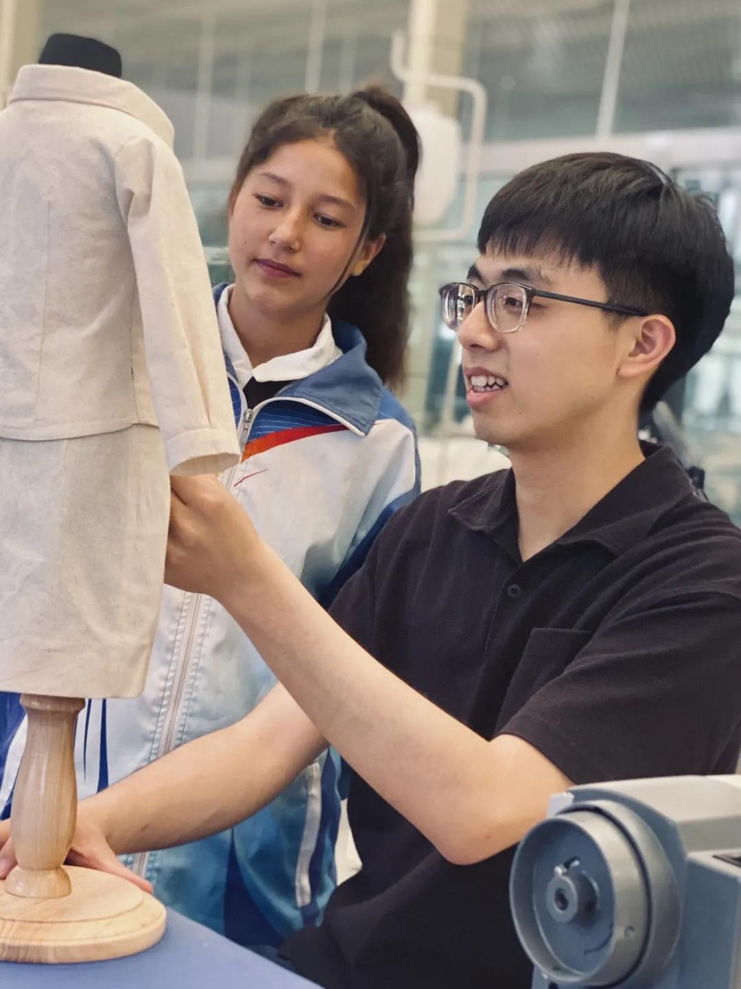 在来到喀什职业技术学院后,董海宇老师发现当地师资团队主要由青年教师组成,专业基础相对薄弱,在高职教学理念、教学设计能力和专业技术水平等方面都迫切需要提升。为此,董海宇老师主动参与到服装结构设计、服装立体裁剪、服装缝制工艺3门难度较大的专业核心课程教学当中,以身试教,组织教师修订人才培养方案,解决了学时分配不合理、专业课程设置不全面、实习实训不集中等一系列问题。