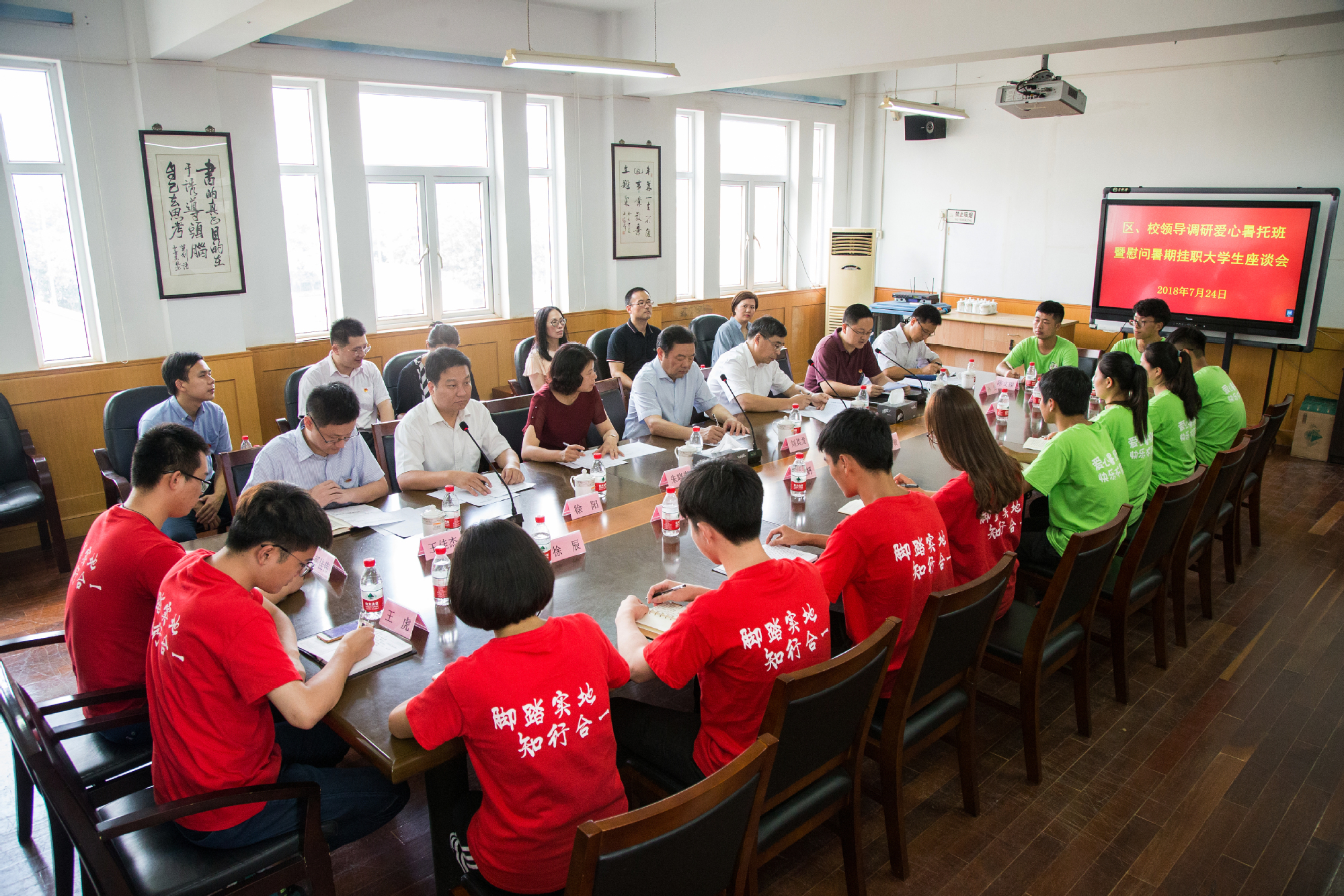 会上,团区委、校团委分别介绍了区校爱心暑托班和暑期挂职实践的开展情况。12名爱心暑托班的志愿者们和暑期挂职的同学们也依次就自己的实践情况和心得感想做了交流汇报。与会领导向同学们赠送了学**籍和防暑用品,勉励他们勤奋学习,不负年华。