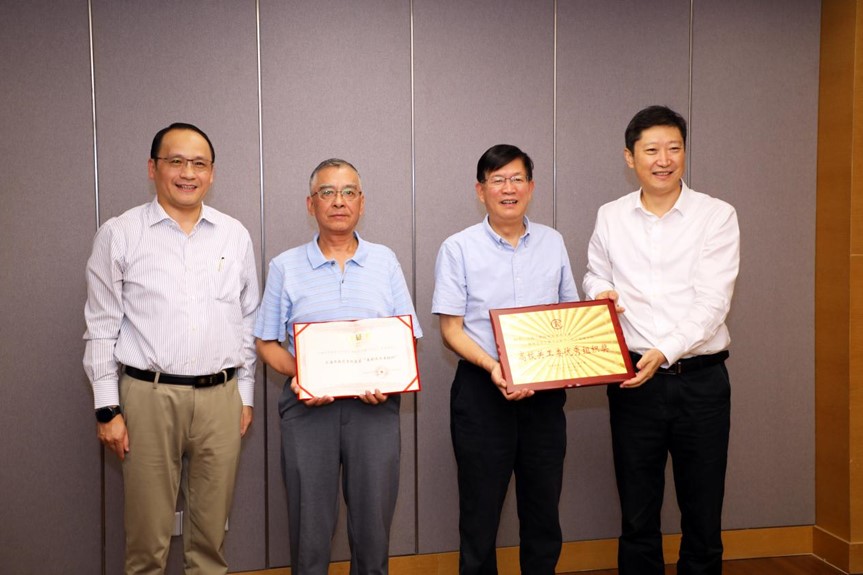 会上,李江书记和俞涛校长为荣获市教育系统关工委奖项的老同志代表田信灿、卫国林颁发了证书。