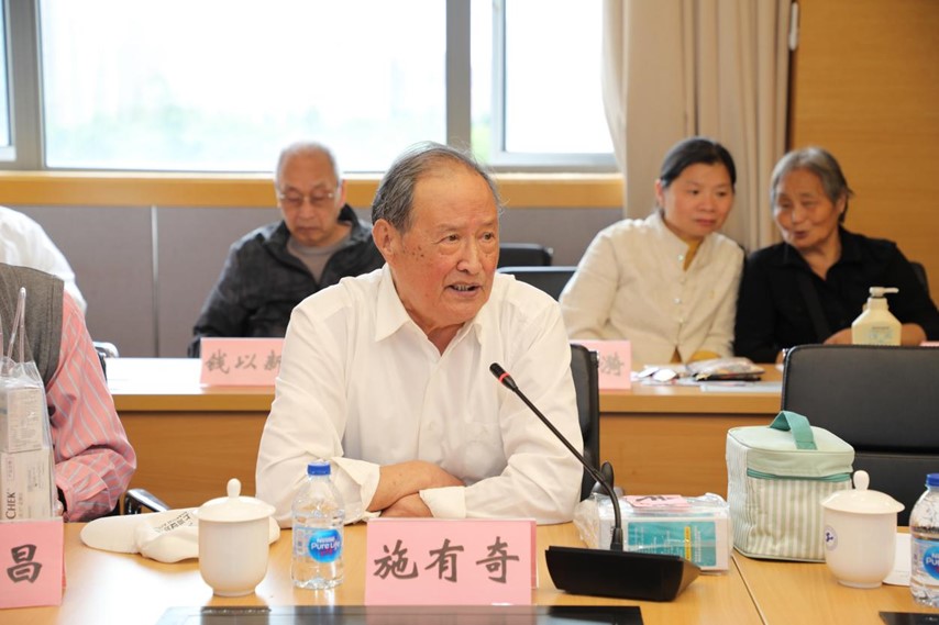 学校离休干部代表、93岁高龄的施有奇老师代表老同志们感谢学校党委的关心和关爱。他讲到,“我虽然已经93岁了,但是我要退休不褪色,永远听党话、跟党走,保持革命本色,传承红色基因”。