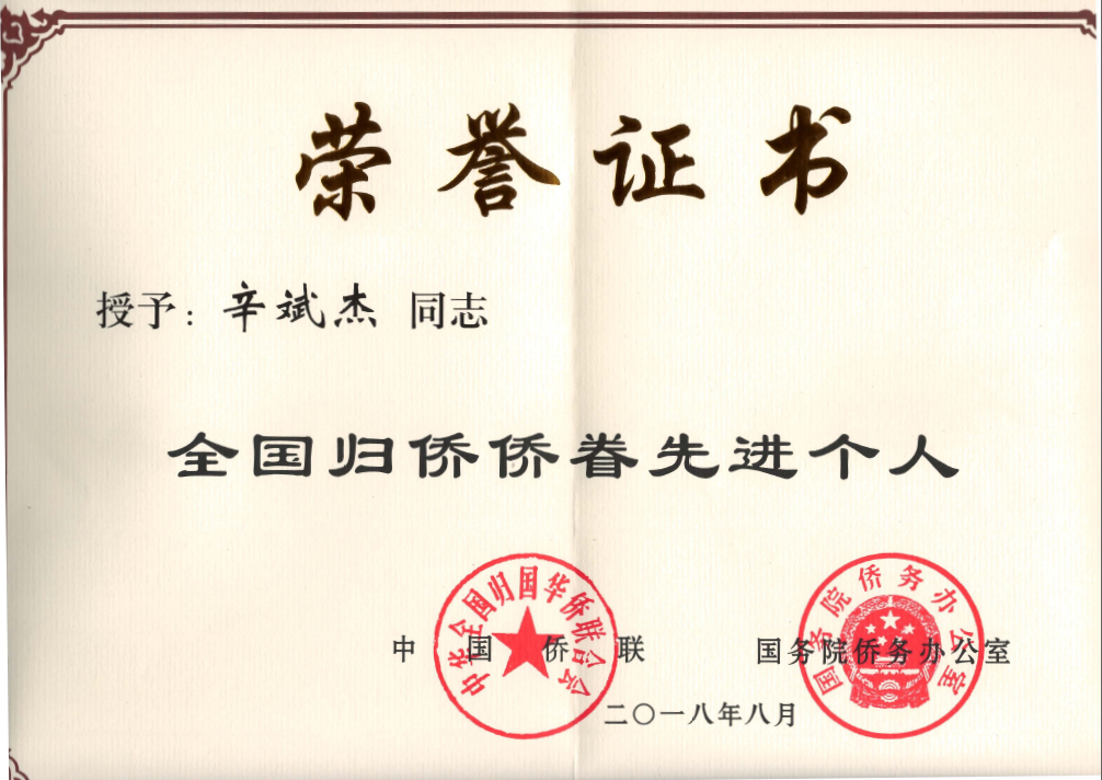 日前举行的第十次全国归侨侨眷代表大会上传来消息,我校侨联副主席、服装学院辛斌杰教授被中国侨联、国务院侨办联合授予“全国归侨侨眷先进个人”荣誉称号。