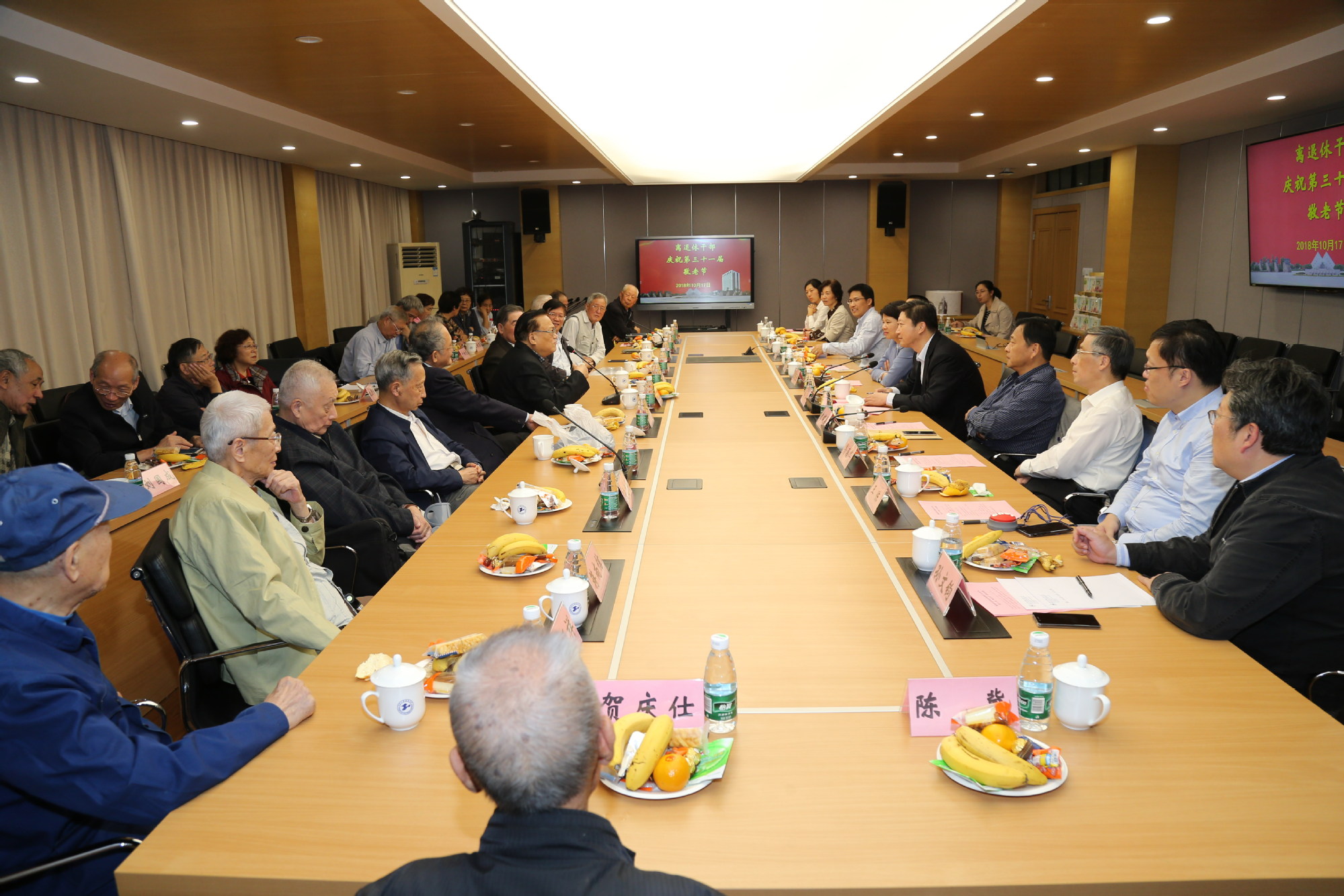 秋风送爽,丹桂飘香,九九重阳。10月17日是第31个“敬老节”,校党委书记李江,校党委副书记史健勇,校党委副书记鲁嘉华,校党委副书记、副校长朱晓青,副校长姚秀平,与离休干部、退休局级干部、退休教职工代表齐聚长宁校区科创楼725会议室,共同参加离退休老同志庆祝第31届“敬老节”座谈会。会议由校党委副书记、副校长朱晓青主持,党委组织部、离退休党工委、老干部办公室参与了此座谈会。