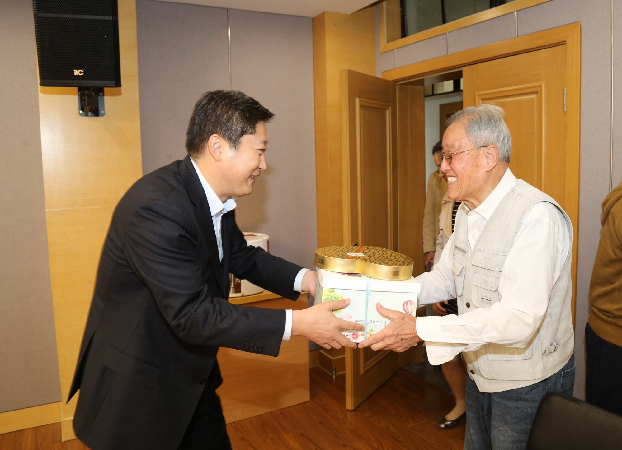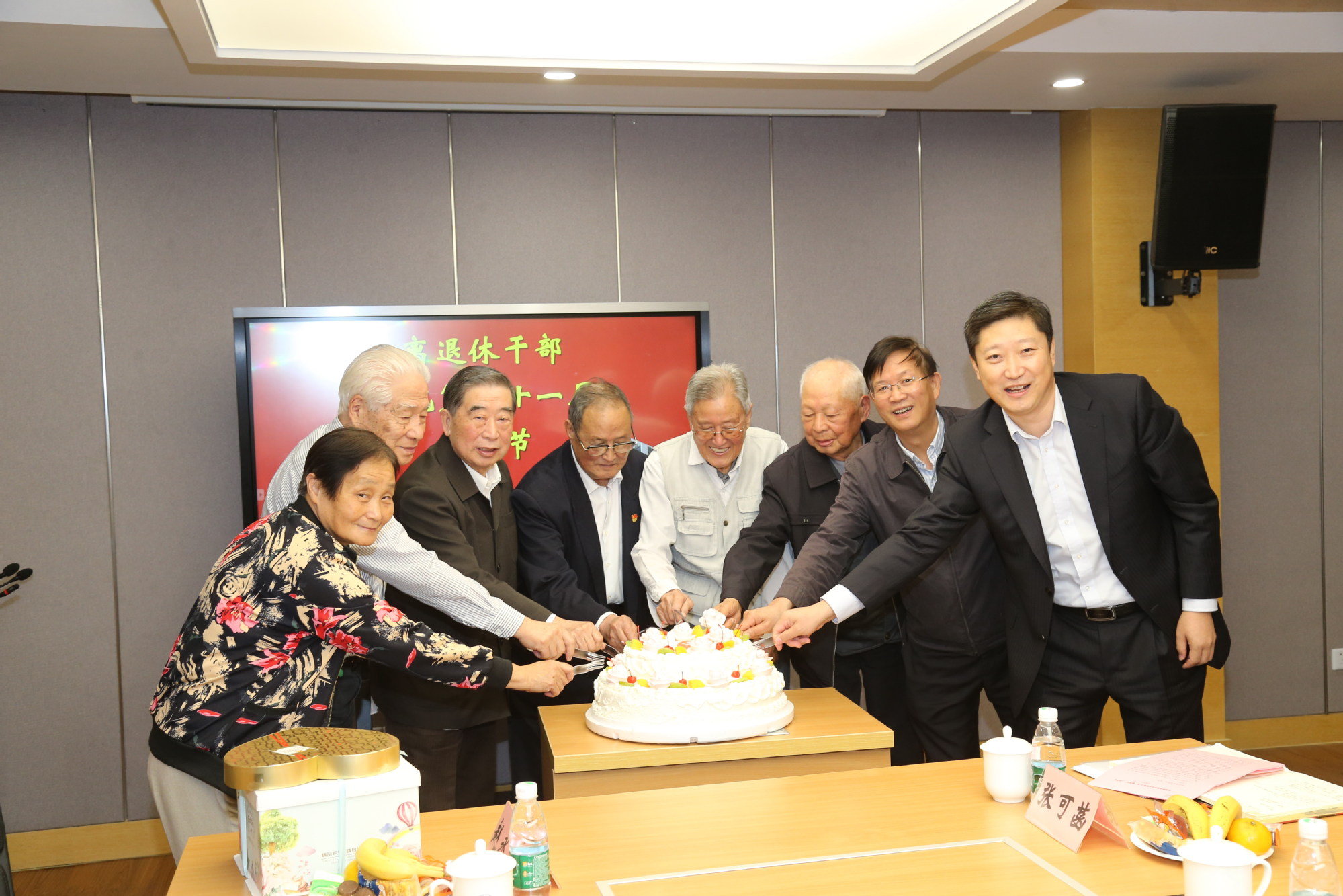 座谈会上,校领导们还为今年65岁、70岁、85岁、90岁的7位离退休老同志过了集体生日。在《生日快乐》的歌声中,李江书记与寿星们共同切开生日蛋糕,校领导们纷纷给老同志们送上了生日礼物,与老同志们共享生日的快乐,并祝愿老同志们身体健康,生活美满,阖家幸福。