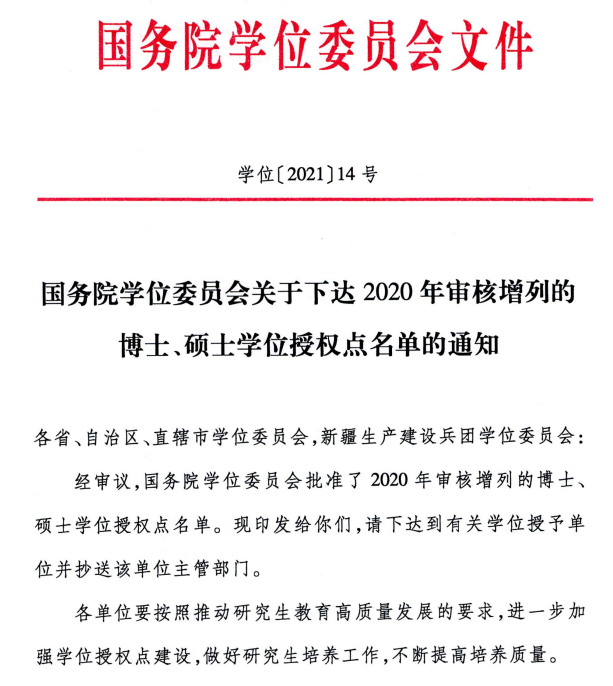 近日,国务院学位委员会发布《关于下达2020年审核增列博士、硕士学位授权点名单的通知》(学位〔2021〕14号),我校获批机械、工商管理、公共管理、资源与环境、材料与化工5个硕士专业授权点。至此,学校已拥有11个一级学科硕士点和8个硕士专业学位类别,涵盖工学、管理学、艺术学、法学、理学等学科门类,形成了工程技术、经济管理和艺术设计协调发展的学位点布局,学科结构进一步完善,专业学位布局不断优化,打造了紧密对接产业链、创新链的高层次应用型创新人才培养体系。