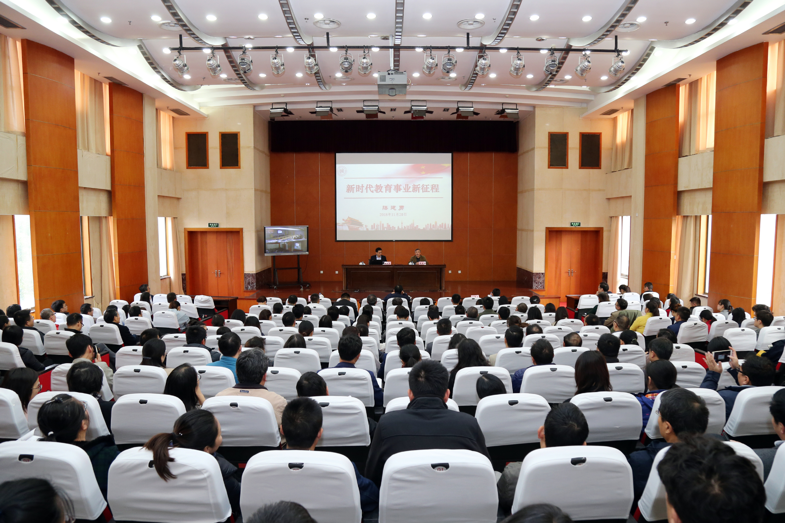 11月20日下午,校党委中心组在行政楼B301会议室举行理论学习会,专题学习贯彻全国教育大会精神,上海师范大学党委书记、上海市教卫工作党委全国教育大会精神宣讲团成员滕建勇应邀作专题报告,校党委副书记史健勇,党委副书记鲁嘉华,副校长姚秀平,中层干部、全体辅导员、机关科级以上干部、各学院教师代表等共计200余人参会。 会议由党委副书记鲁嘉华主持。