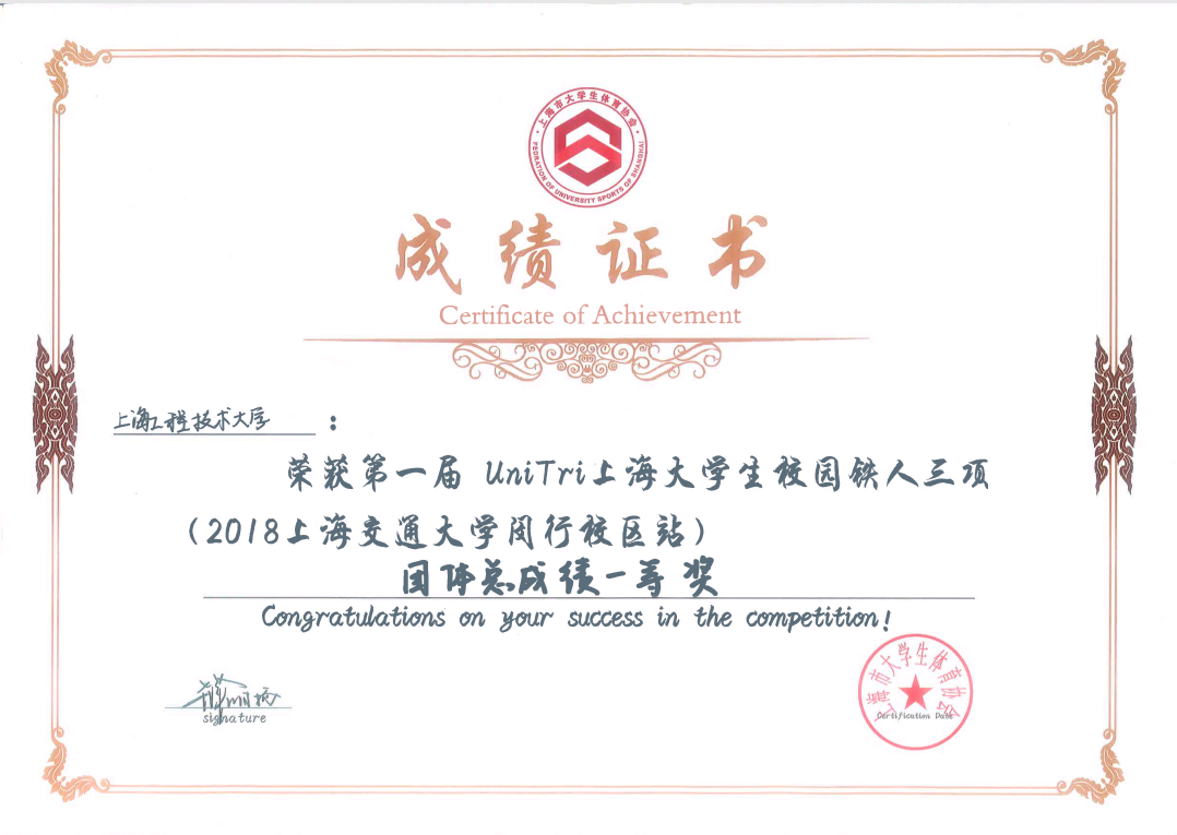 上海市大学生铁人三项赛事的举办旨在推动上海及全国高校铁人三项运动的普及与开展,同时,促进青少年身心健康、体魄强健。本次活动吸引了约100名上海市各大学铁人三项运动的精英们,是一场精彩绝伦的强强对决。我校长跑队18名队员代表参加本次赛事,在体育部蔡二康老师的带领下,队员们秉承不放弃不抛弃奋勇拼搏的精神,最终白健斩获男子组冠军,桑秀吕斩获男子组季军,祝文、王缅、封吟涛分别荣获第五、六、七名,男子组以绝对的优势获得团体赛冠军;女子组赵沛婷、肖倩、陈妍、谢意如分别斩获女子组第四、五、六、八名。