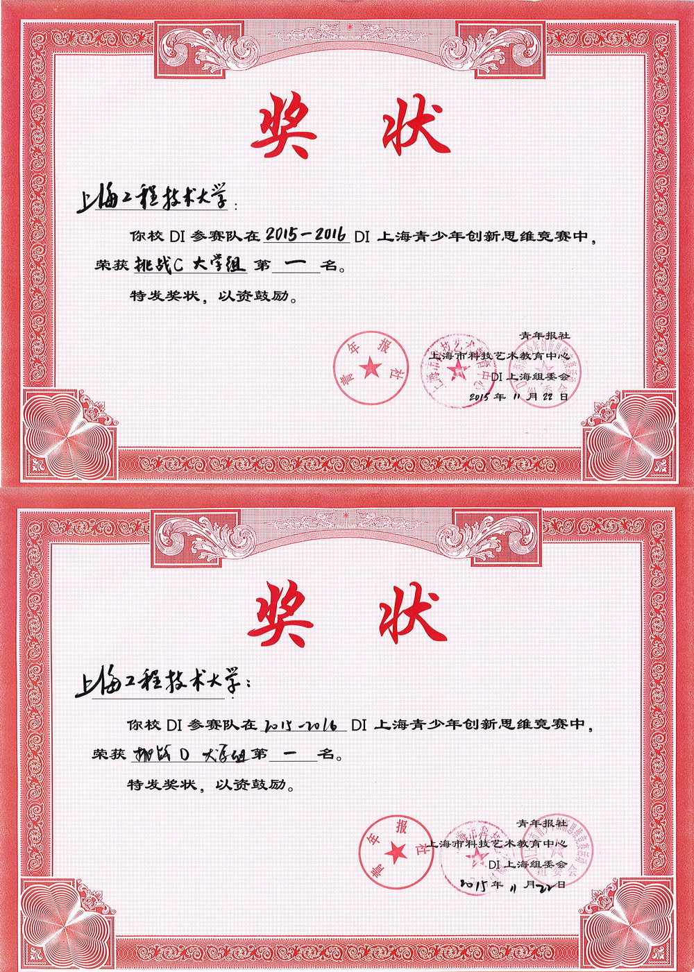 DI青少年创新思维竞赛是一项国际性的青少年科技创新比赛,1999年发源于美国,主要考查学生的创造精神与团队精神,旨在提高参赛者的综合素质,鼓励青少年大胆创新、动脑动手、团结协作。大学组参加的比赛分为技术类、科技类、艺术类、即兴类和结构类。DI从2006年起开始在中国开展,现已推广到全国十多个省市。