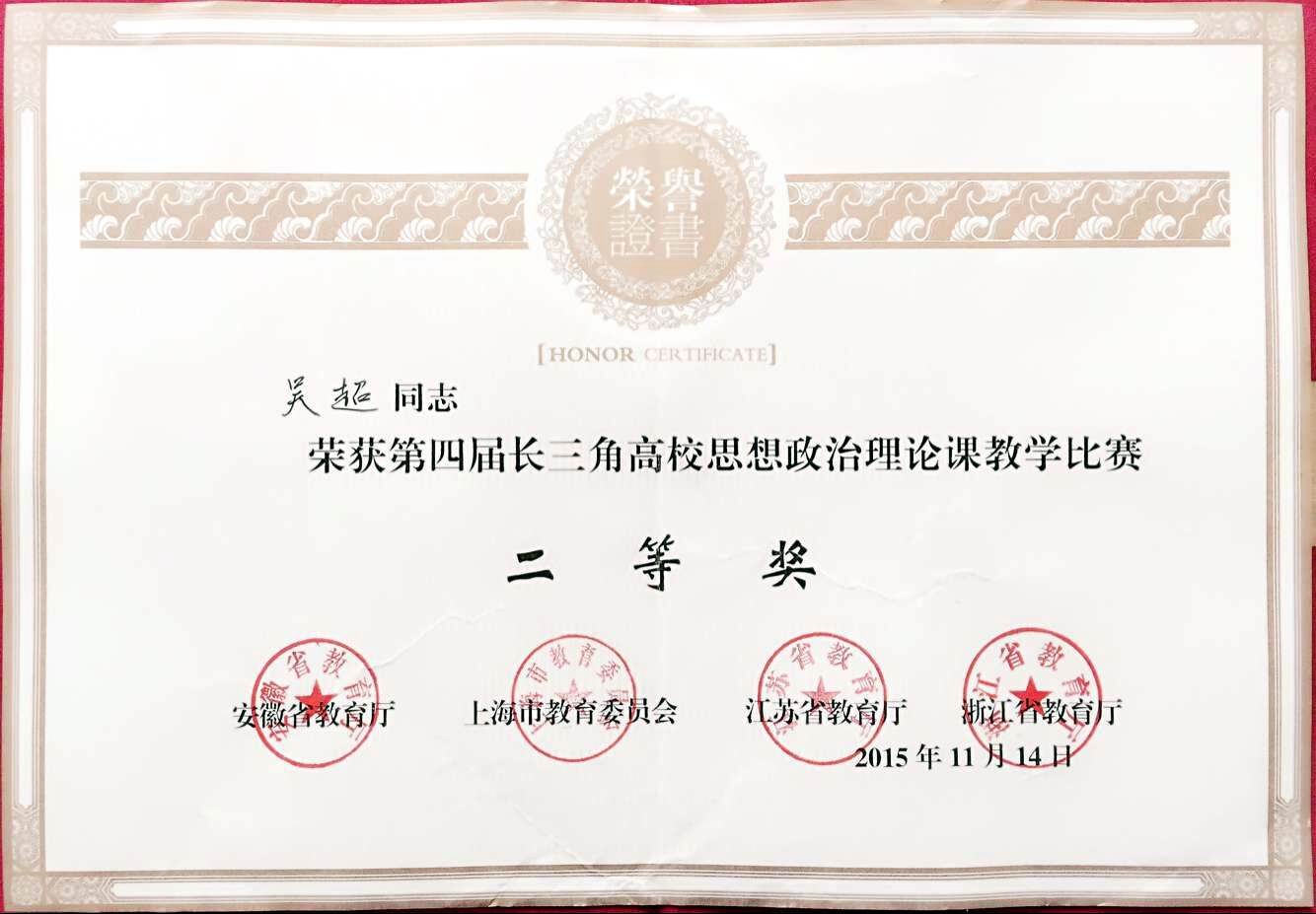 近日,由上海市教育委员会、安徽省教育厅、江苏省教育厅、浙江省教育厅共同主办的第四届长三角高校思想政治理论课教学比赛在位于芜湖的安徽师范大学举行。我校马克思主义理论教学部吴超副教授经过严格选拔,作为上海市重点推荐的思政课教师代表之一参加了《中国近现代史纲要》组比赛。在与长三角高校众多优秀同行教师的同台竞技中,吴超副教授荣获二等奖,追平了四届以来《中国近现代史纲要》组上海市参赛选手取得的最好成绩。