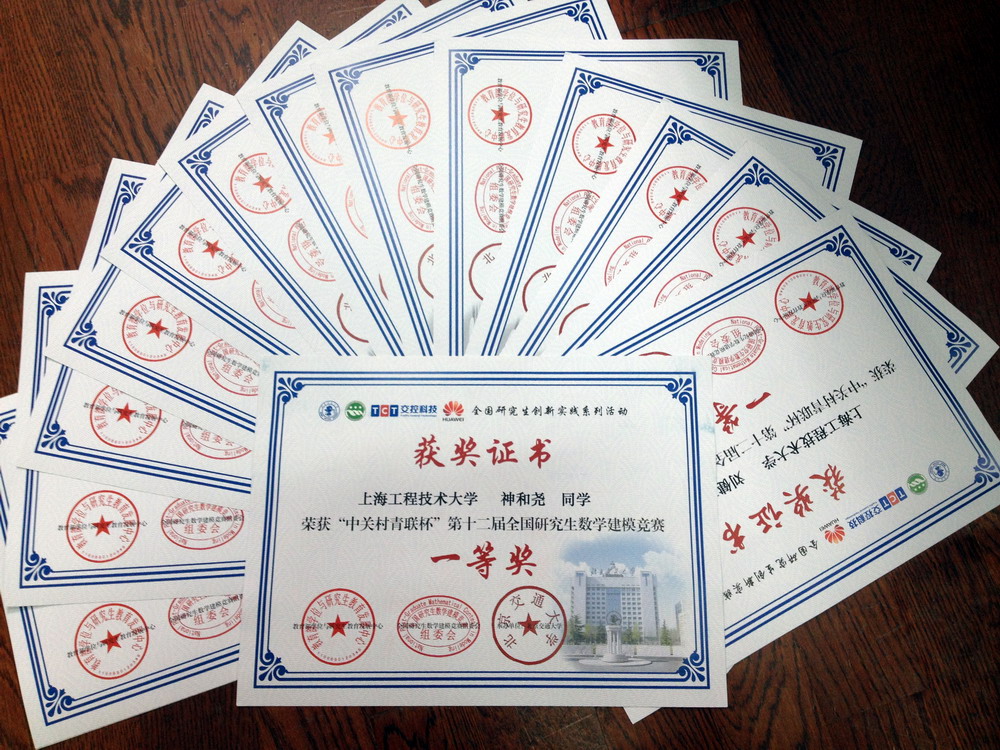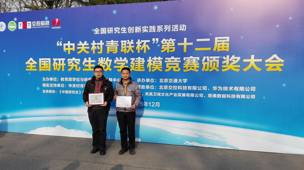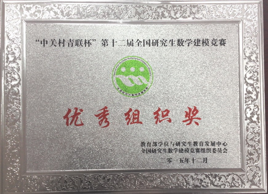 近日,全国第十二届研究生数学建模竞赛颁奖大会上传来喜讯,我校研究生再创辉煌,获得全国一等奖1项,二等奖17项,三等奖29项,成功参赛奖73项。在全国390多家参赛的高校和科研院所中,我校成绩高居全国第6位,凭借骄人的成绩和出色的组织工作,被教育部学位与研究生教育发展中心、全国研究生数学建模竞赛组织委员会授予“全国研究生数学建模竞赛优秀组织奖”。