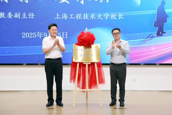 娄永琪与叶霖霖为“上海工程技术大学老年大学”揭牌