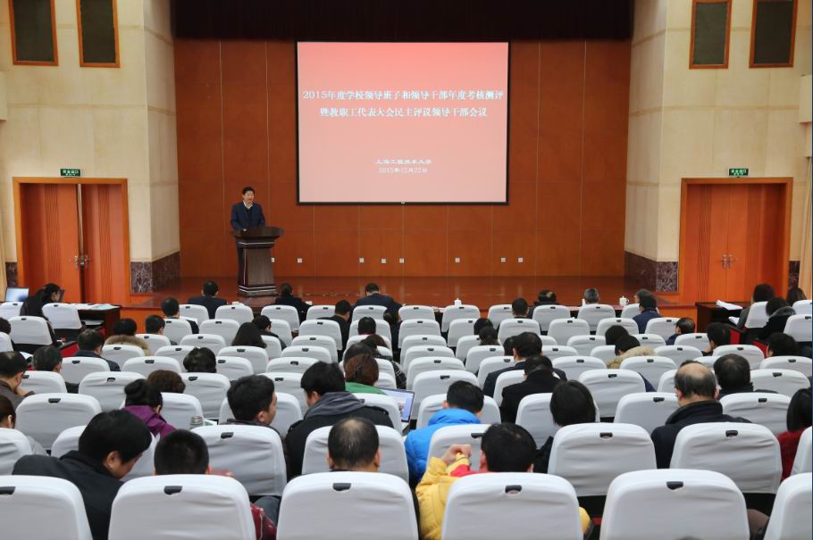 为进一步加强领导班子和干部队伍建设,根据市教卫工作党委关于做好系统领导班子和领导干部2015年度考核工作的通知要求,12月22日上午9点,校党委在行政楼B301会议室举行2015年度学校领导班子和领导干部年度考核测评暨教代会民主评议领导干部会议。全体校领导、两委委员、中层正职、部分党代会代表、全体教代会正式代表、教授代表、离退休老同志代表、民主党派人士代表出席,会议由校党委书记李江主持。