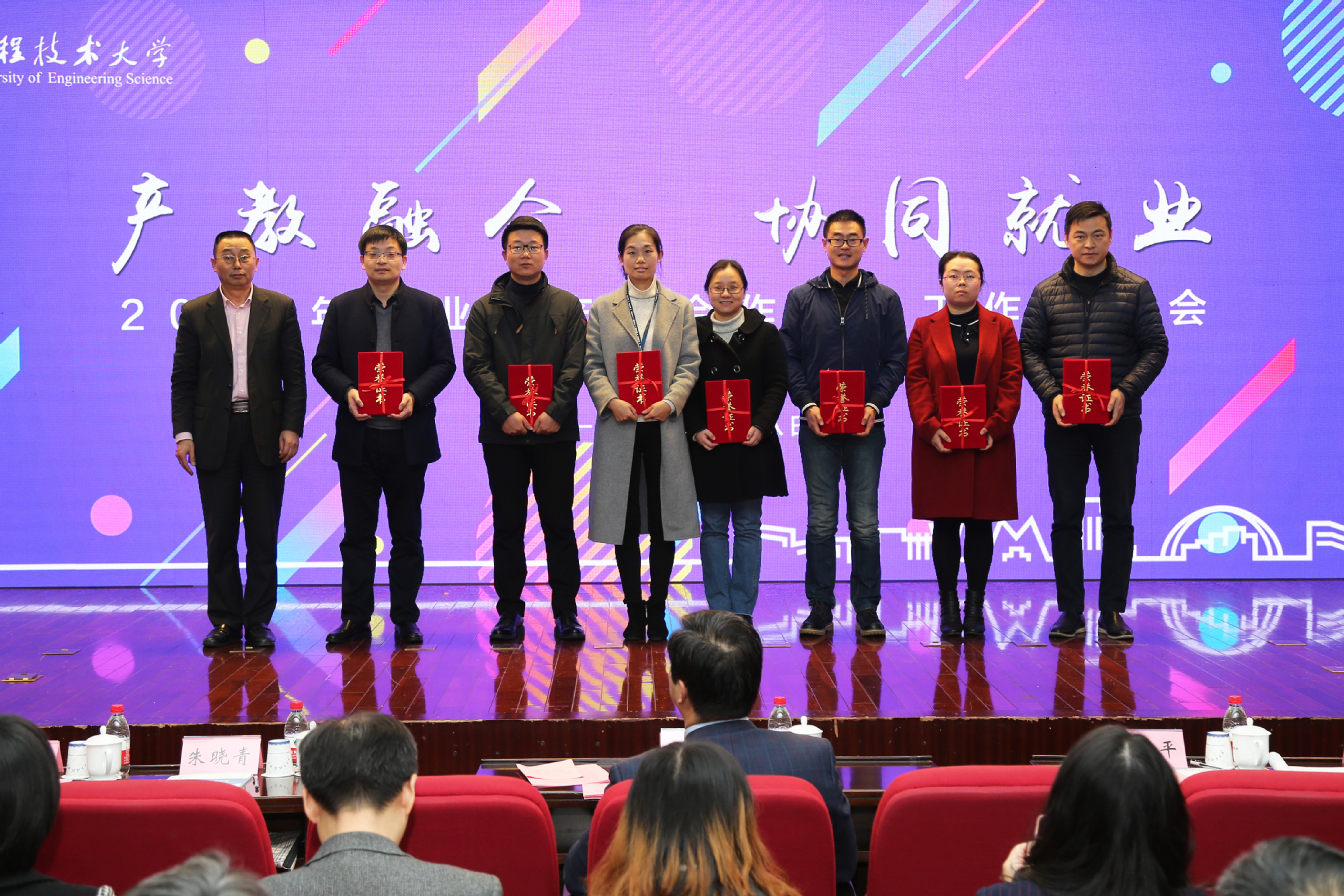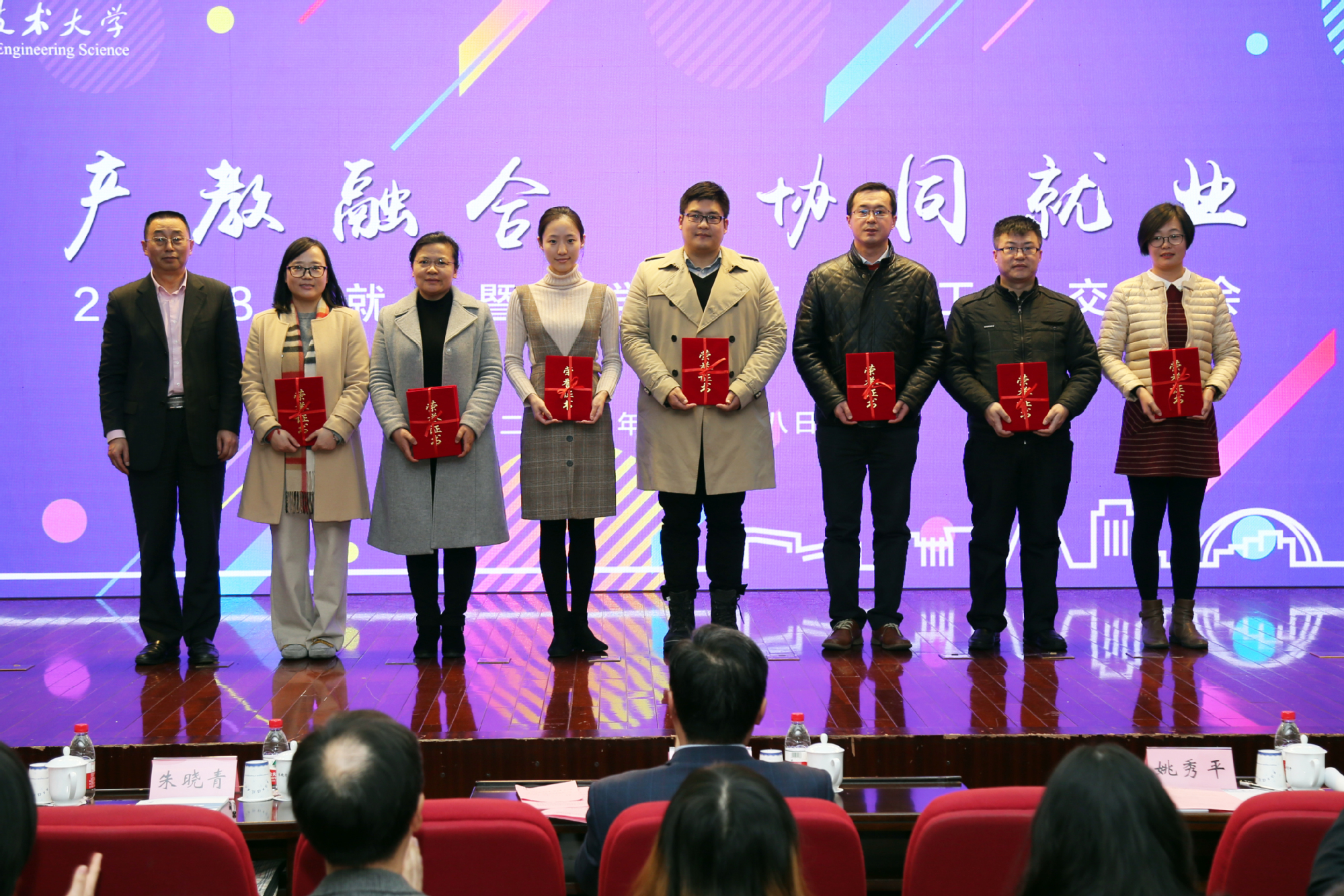 会上,校党委书记李江宣布了2018年学校就业工作“十佳用人单位”名单,并为企业代表颁发纪念奖牌。校党委副书记、副校长朱晓青,副校长姚秀平分别宣布了2018年就业及产学合作教育工作先进集体和先进个人名单,并对他们所做出的努力和取得的成绩表示感谢和祝贺。