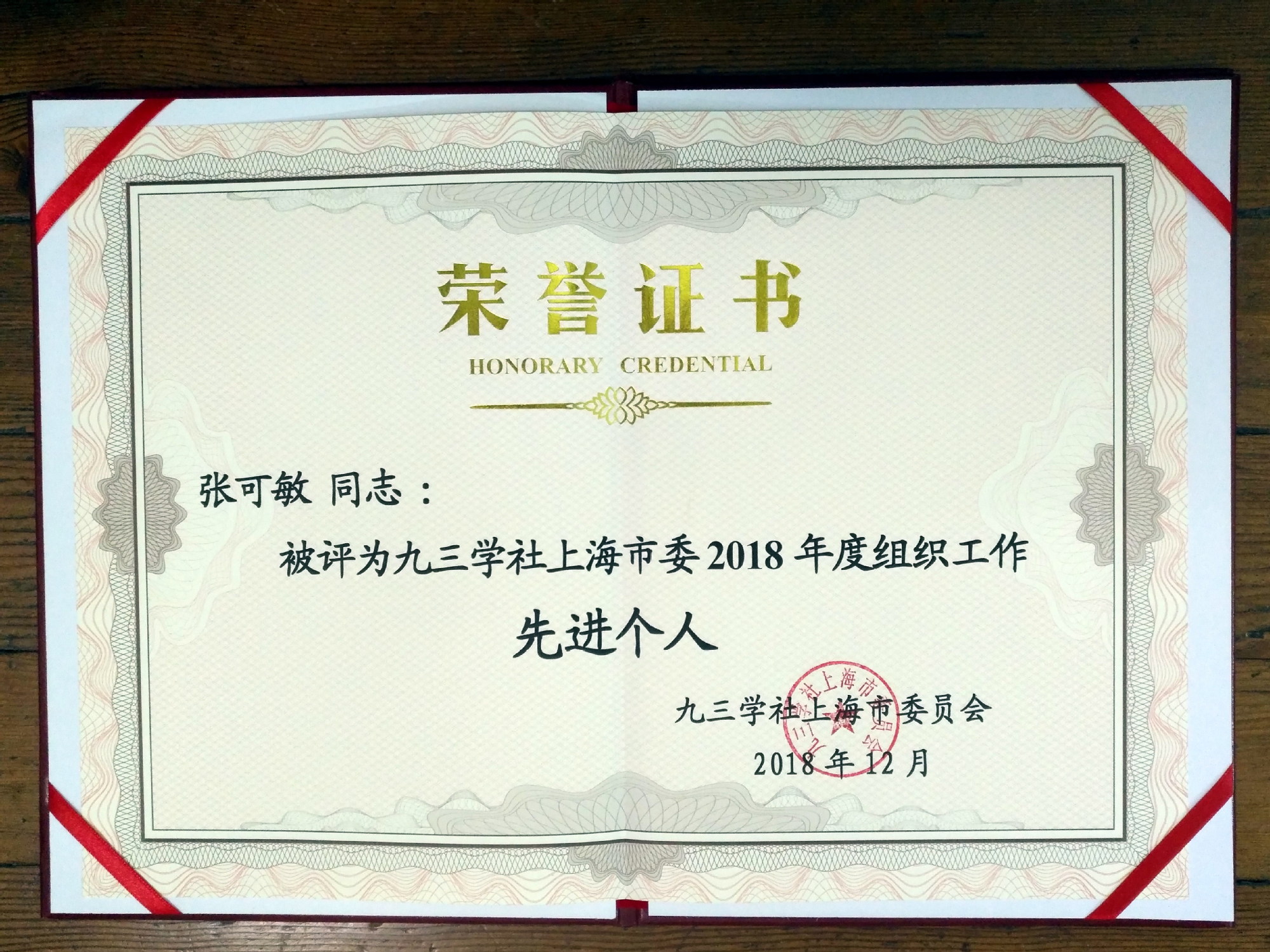 日前,九三学社上海市第十七届委员会召开了第三次全体(扩大)会议。会议期间表彰了2018年度组织工作先进集体和先进个人。九三学社工程大委员会荣获先进集体一等奖,社员张可敏荣获组织工作先进个人。