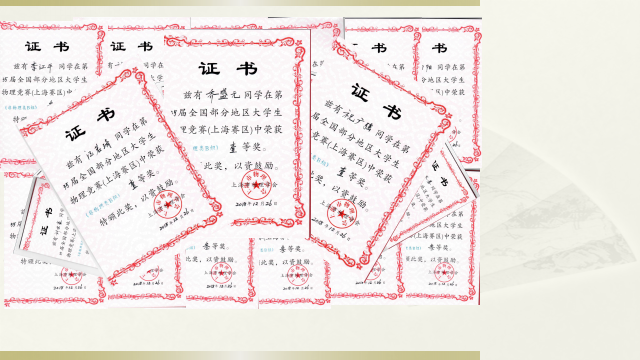 第35届全国部分地区大学生物理竞赛(上海赛区)比赛结果近日揭晓,我校参赛的49名同学在非物理类组比赛中再创佳绩:共有23位同学获奖,其中一等奖3人,二等奖8人,三等奖12人。