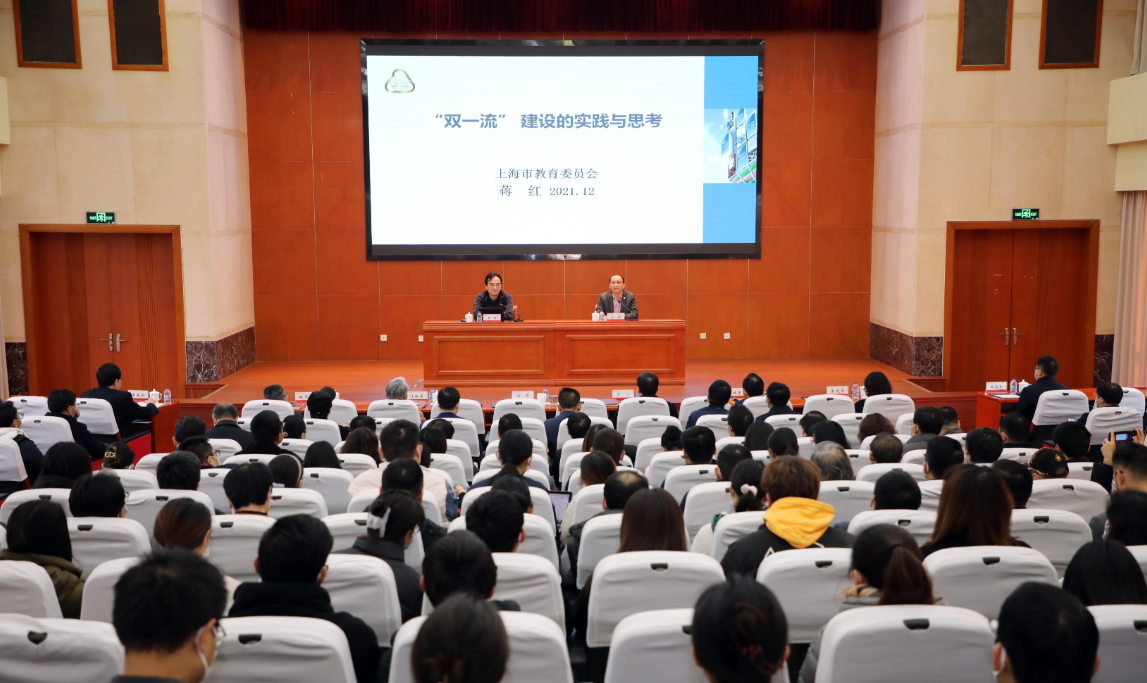 12月9日上午,学校党委理论学习中心组在行政楼B301会议室召开党委理论学习中心组(扩大)学习会,特邀上海市教委巡视员蒋红作《上海高校“双一流”建设的实践与思考》的辅导报告,校党委中心组成员、中层干部、学科带头人、辅导员参会,会议由校党委副书记、校长俞涛主持。