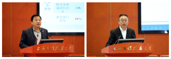 校党委副书记、工会主席史健勇,副校长姚秀平围绕2021年度部门考核工作“为什么变”“怎么改变”“变了什么”,分别介绍了机关及直属单位、教学科研单位考核工作完善和优化举措。