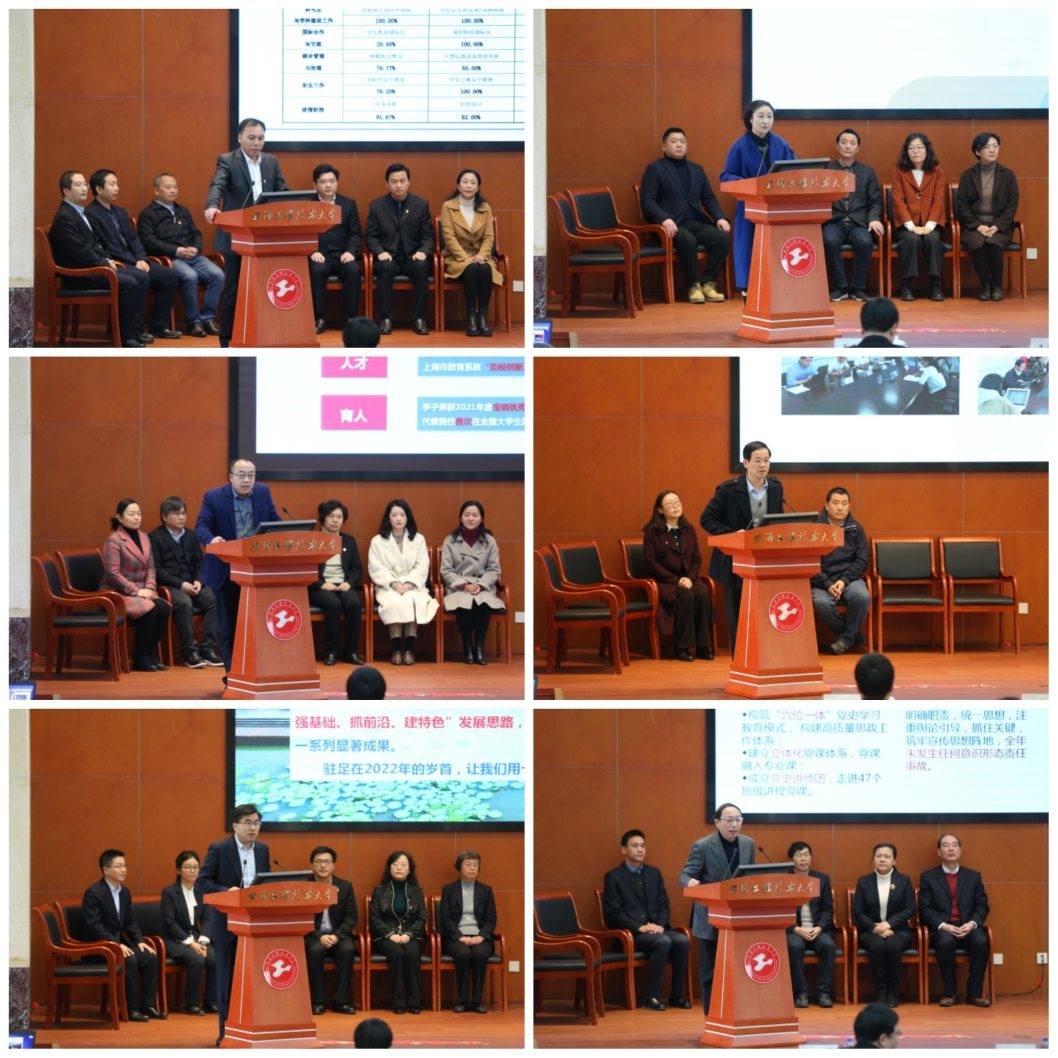 俞涛校长肯定了年度工作汇报会是学校全年工作精华的高度浓缩。他指出,2021年学校把教育评价总体方案要求、分类评价指标等内容融入了二级单位年度考核指标,充分发挥了考核工作的导向激励作用。他要求各部门辩证看待考核工作和考核结果,以考核促发展。一是每个部门工作内容和工作性质不同,不具有可比性,但都是学校事业发展“大拼图”中不可或缺的“一块”,各司其职、各具特色;二是每个部门既可以与自身历年的发展变化比,也可以与上海乃至全国同类高校的相应部门比,重视纵横向比较;三是每个部门不仅可以比进步、比成绩,还可以比工作态度、比精神面貌,从考核内容广度看也具有可比性。他强调,只有“大拼图”中的“每一块”都绽放靓丽色彩,才能呈现学校高质量发展的“最美图案”,希望各部门2022年提前谋划,在遵循教育发展规律基础上实现学校事业螺旋式提升。