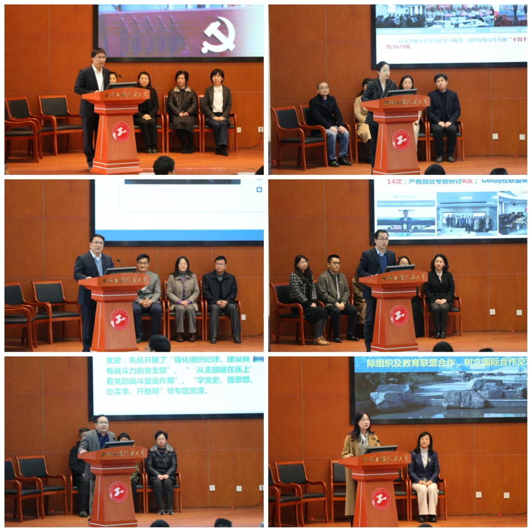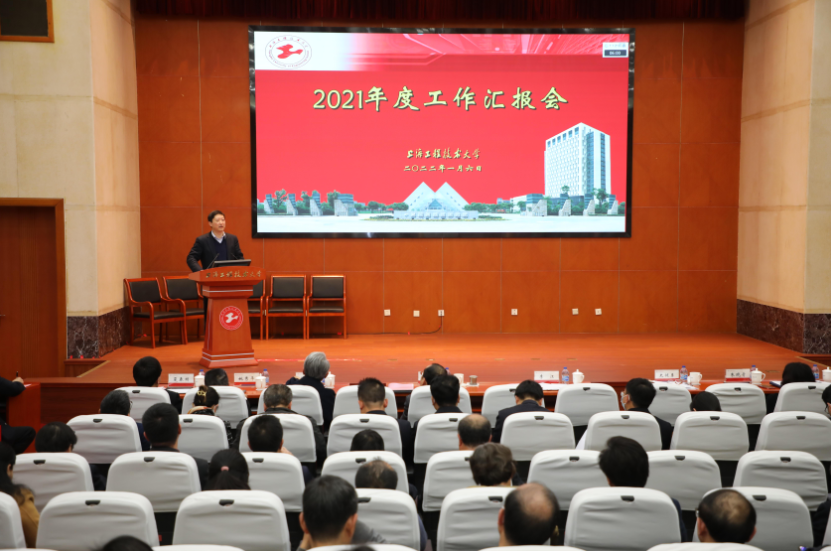 1月6日,2021年度部门考核工作汇报会在行政楼B301会议室举行。全体校领导出席会议,中层干部、教师代表等参加会议。会议分别由校党委副书记、工会主席史健勇,副校长姚秀平主持。
