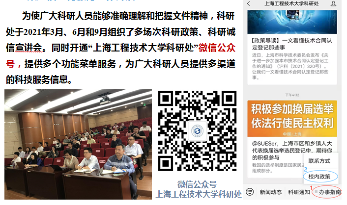 校科普教育基地工作持续推进,科研处组织相关学院申报各类科普项目,获批上海市科技创新行动计划科普专项项目1项、松江区科普项目2项。1项科普活动获得2021年全国科普日活动推优,在2021年上海市科学实验展演汇演活动中获得三等奖和优秀奖各一项;在2021年松江区科普讲解大赛中我校获一等奖1项、三等奖3项、优胜奖5项,获奖总数占全区近2/3。举办校内年度科普讲解大赛和科技常识竞赛等系列科普活动,积极营造热爱科学、崇尚科学的校园氛围。