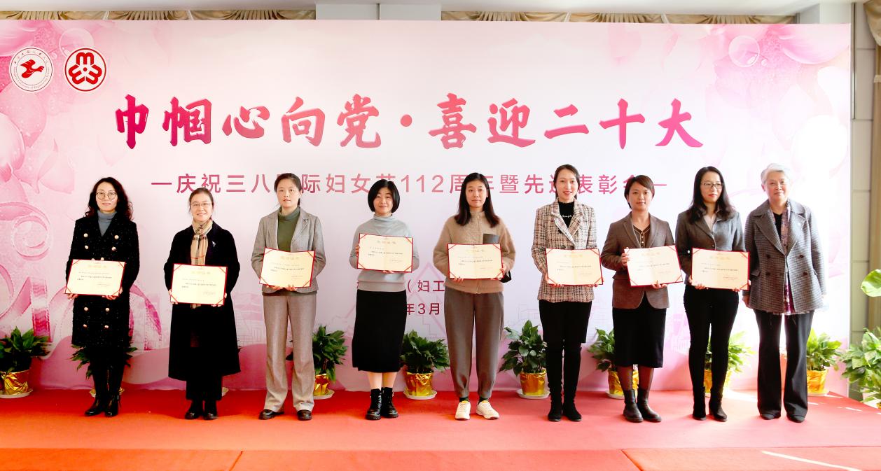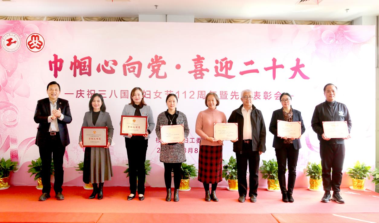在“三八”国际劳动妇女节到来之际,为表彰先进典型、凝聚奋进力量,3月8日,学校举办“巾帼心向党 喜迎二十大”庆祝“三八”国际劳动妇女节112周年暨先进表彰会,校党委书记李江,党委副书记、校长俞涛,党委副书记、工会主席史健勇,党委副书记、纪委书记门妍萍,党委副书记、副校长、妇工委主任朱晓青出席会议,相关职能部处、学院负责人以及获奖师生代表参加会议,会议由校工会常务副主席、妇工委常务副主任李霞主持。