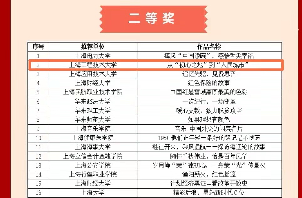 近日,由共青团上海市委员会、上海市学生联合会联合举办的2021年上海学校共青团“学党史、强信念、跟党走”主题微团课大赛落下帷幕。经基层团支部自主申报、院级遴选、校级审核推荐、评审专家组综合评定,在全市187件优秀作品中,我校青年讲师团成员、马克思主义学院李佳铭同学团队《从“初心之地”到“人民城市”》微团课脱颖而出,荣获二等奖。