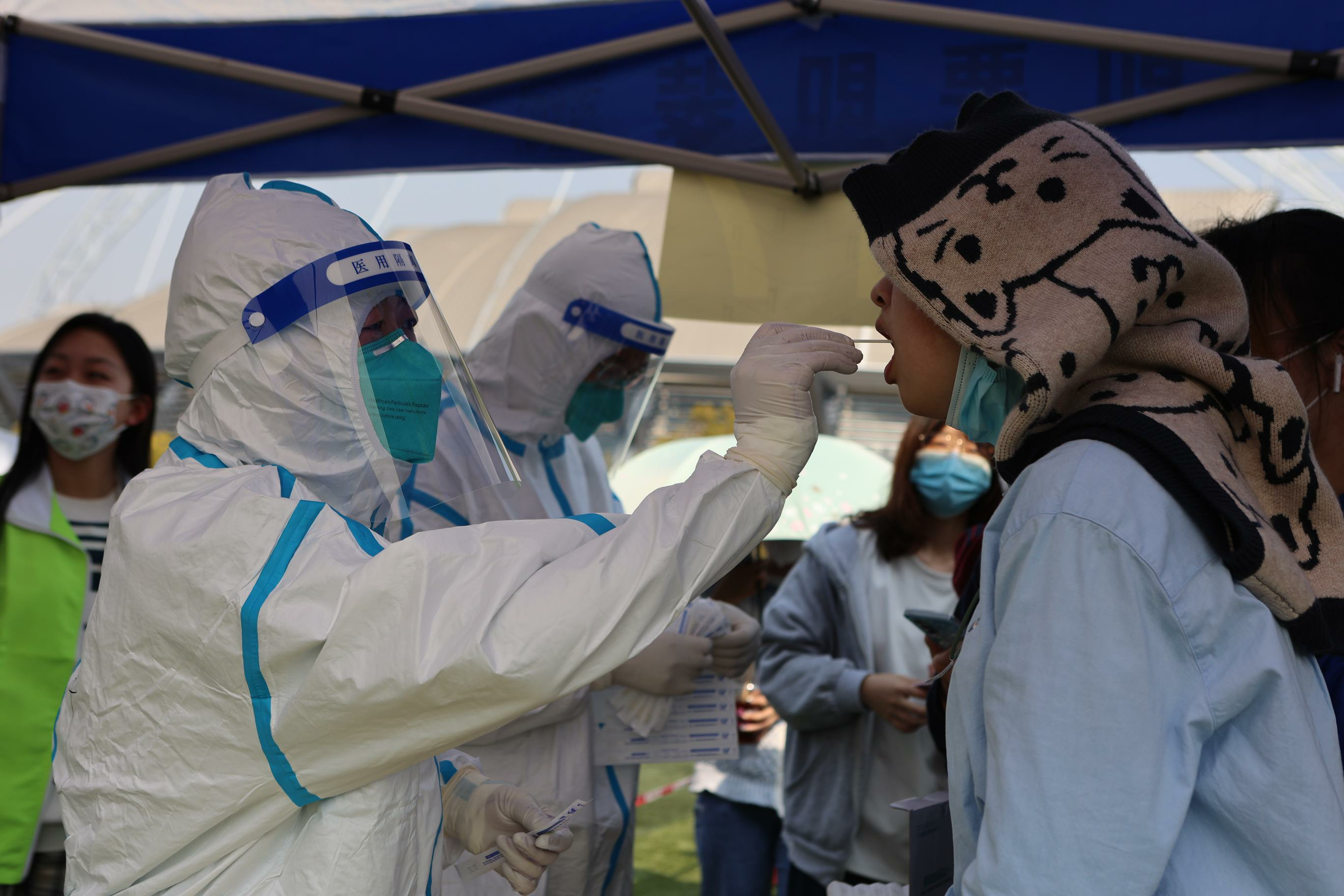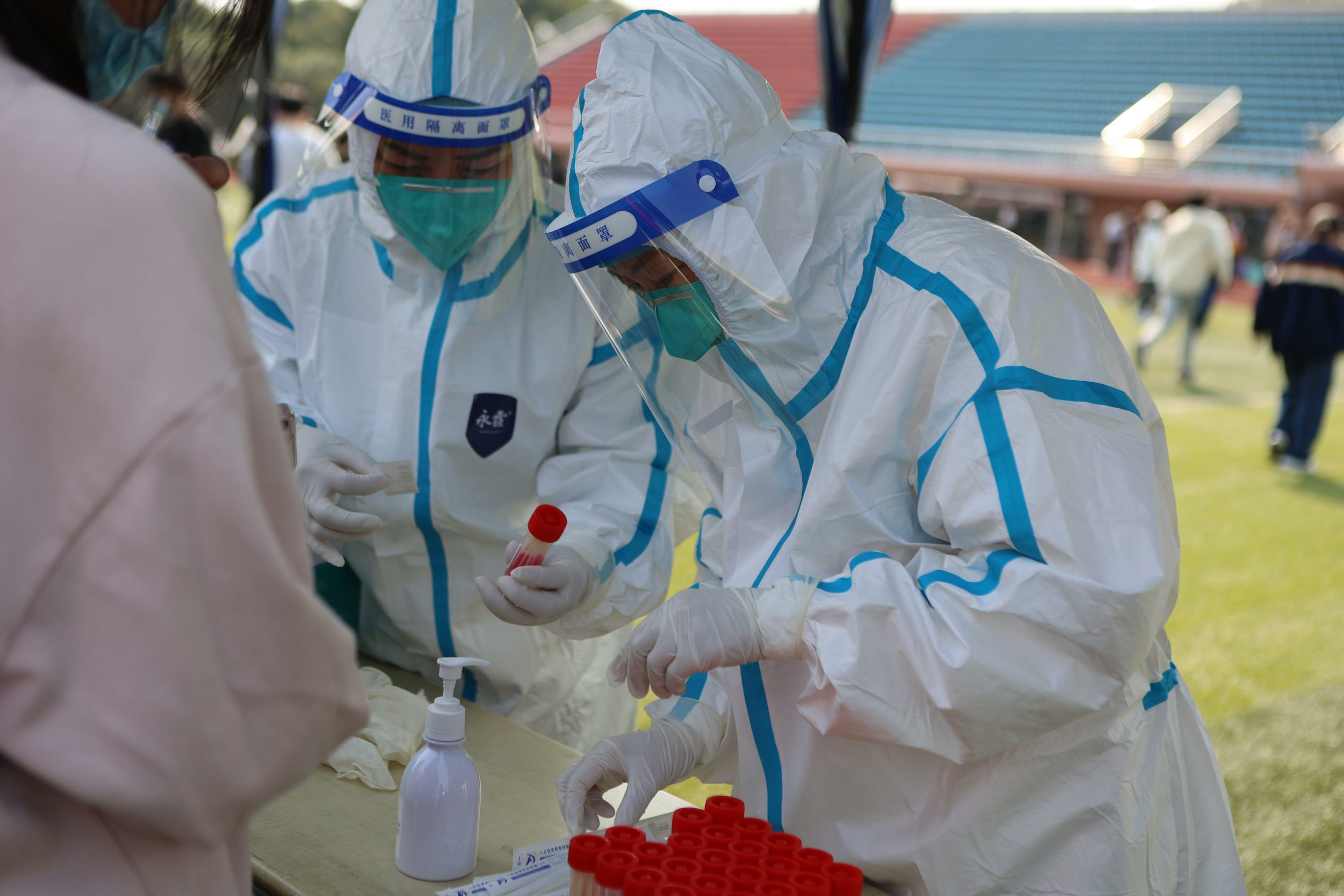 这两天,三月的骄阳,燃着六月的热情。医护人员身着密不透风的防护服,在烈日下连续工作,辛苦的付出都在师生的眼中,检测完毕,大家都会由衷地说一声:“谢谢,辛苦了!”
