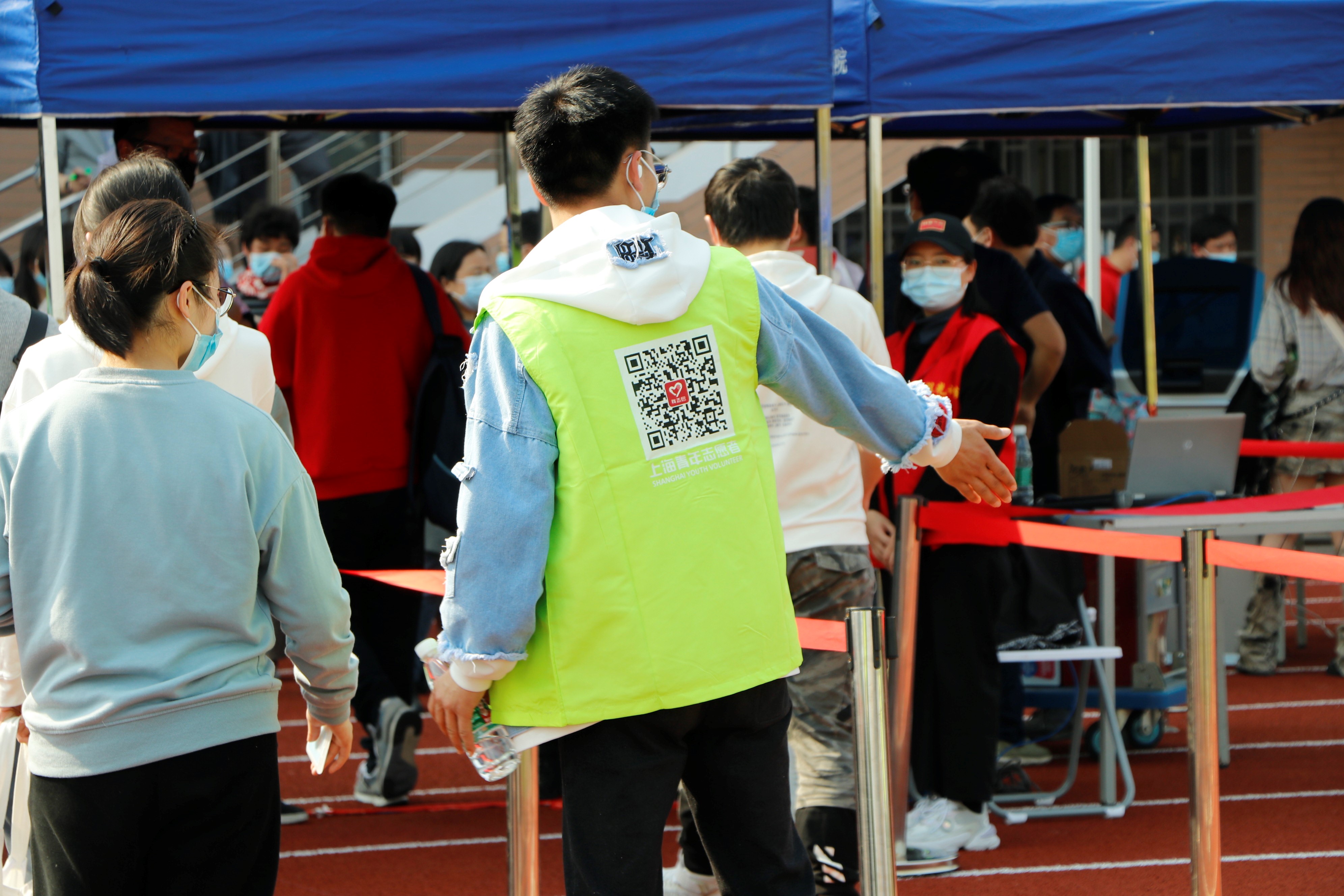 “每次检测开始前,我们提早一小时到达现场,安排并培训组员具体工作。由于待检测人数多,医务人员有限,任务十分繁重,现场情况复杂,时刻都在变化。在得知医务人员有限,需要我们协助进行PDA扫码后,我组织组员迅速学习PDA使用方法,并立刻投入了扫码的工作当中。在休息间隙与白衣天使们沟通交流后,我更加深刻地感受到了作为医务工作人员的伟大与不易,也学到了很多关于检测方面的知识。第一天核酸结束后,我们连夜讨论并确定了更加优质的服务方案,在第二天采用多种形式促使核酸检测更高效进行。两天的服务,虽然我腿脚累得肿胀酸疼,但通过这次志愿者的经历,我感受到了每一位工程大人的担当。特殊时期我们所有人都是平安程园、守护上海的一份子。希望疫情早日过去,在今后我也会积极的投入各种志愿服务当中,为学校、社会、国家贡献出自己的青春力量!”