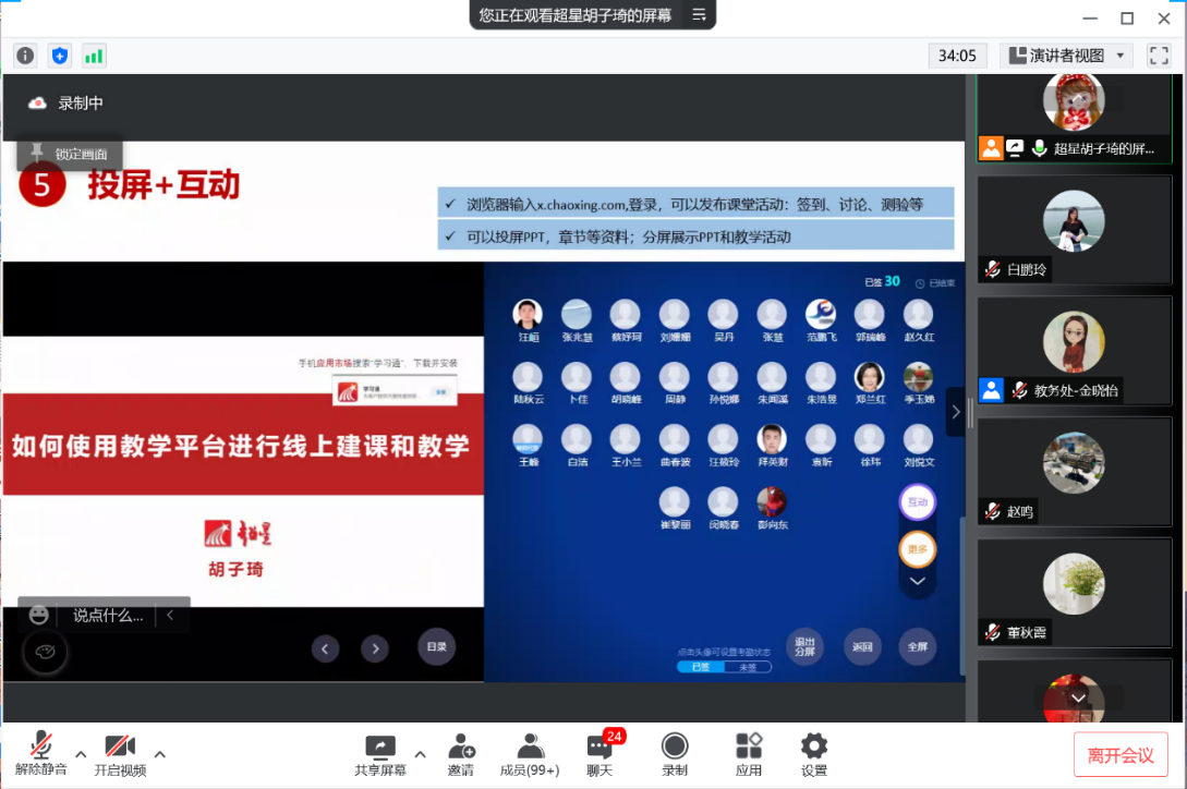 在当前常态化疫情防控形势下,为保障教学正常运行,学校时刻做好在线教学应急预案。本学期开学前,将教学系统数据和超星平台进行对接,导入课表、学生名单,保障教师随时开展在线教学。