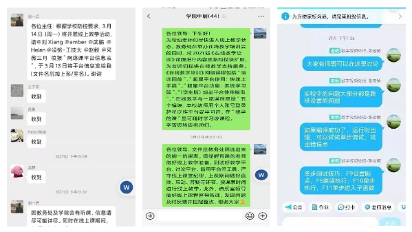 工程实训中心兼职教务员丁婷老师一方面要担负与教务处的及时信息交流传递,另一方面还要承担在线教学任务,她加班加点,及时传达教务处的各项通知,帮助在线上教学过程中遇到疑问和困难的教师与教务处沟通协调,以实际行动发挥为人师表的模范作用,助力了线上教学的有序进行。