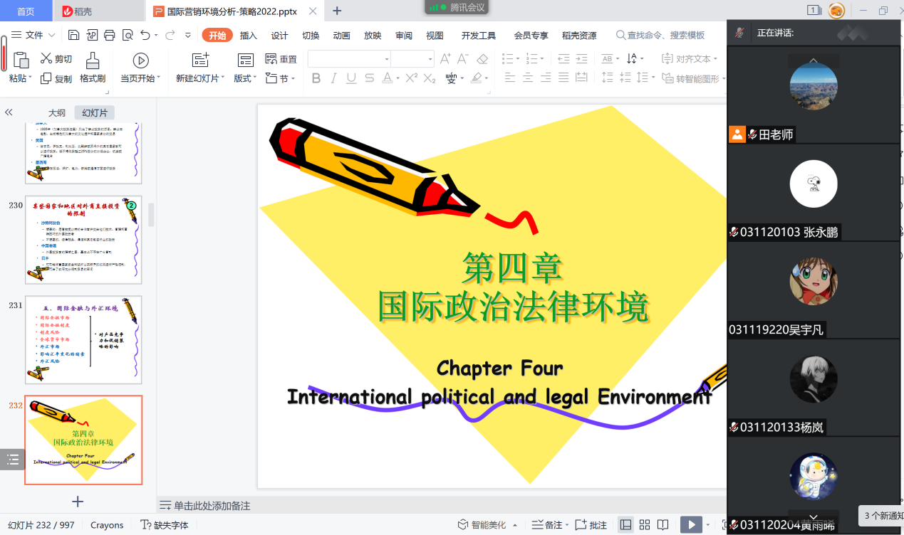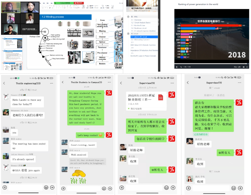 他们创新线上教学模式,保障教学质量。民盟工程大副主委田雪莹老师在国际营销环境分析课程中通过课堂讲授+案例解读+视频展示+互动讨论四个板块,带领学生了解国际政治环境变化对企业营销活动的影响。九三学社工程大副主委倪洁诚老师在鞋帽包袋设计基础课程中制作一比一的鞋楦和跟型效果图作为参考资料,加深学生对鞋楦的理解。新侨教师代表、九三学社社员高伟洪老师采用腾讯会议+超星学习通进行线上教学,及时跟踪学生学习情况,了解反馈意见用于课程教学的改进。新侨教师代表郑元生老师采用腾讯会议+iClass智慧课堂进行授课,利用iClass智慧课堂进行考勤、课程随机点名提问和课前检测、课后作业与答疑,提高了线上课堂的学习效果。新侨代表郑元生、陈郁老师为国际学生讲解纺织领域的中国故事,努力培养知华、友华的优秀纺织工程专业人才。致公党支部成员在不同院系累计开设了10多门公共平台课和专业课。在线教学过程均制定了完备的教学工作预案,确保在线教学质量不降低,全力支撑本学期教学任务的高质量完成。