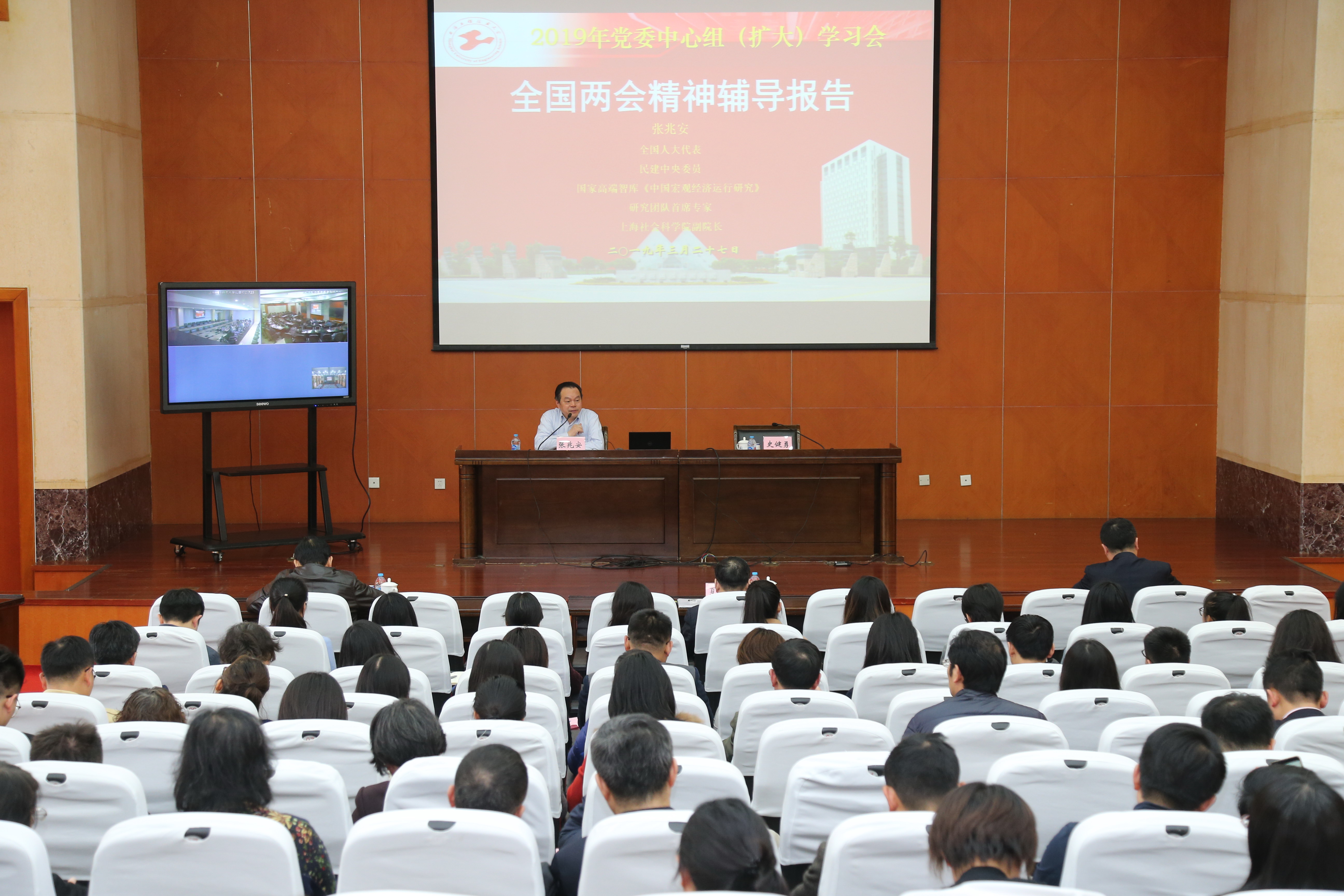 3月27日,学校召开党委中心组扩大学习会,全国人大代表、民建中央委员、国家高端智库《中国宏观经济运行研究》研究团队首席专家、上海社会科学院副院长张兆安研究员应邀来校作了题为“两会精神学习”专题辅导报告。党委副书记史健勇,副校长王岩松,中心组成员、中层干部、党支部书记、机关科级干部、辅导员、学生代表共计200余人参加了会议。校党委副书记史健勇主持会议。