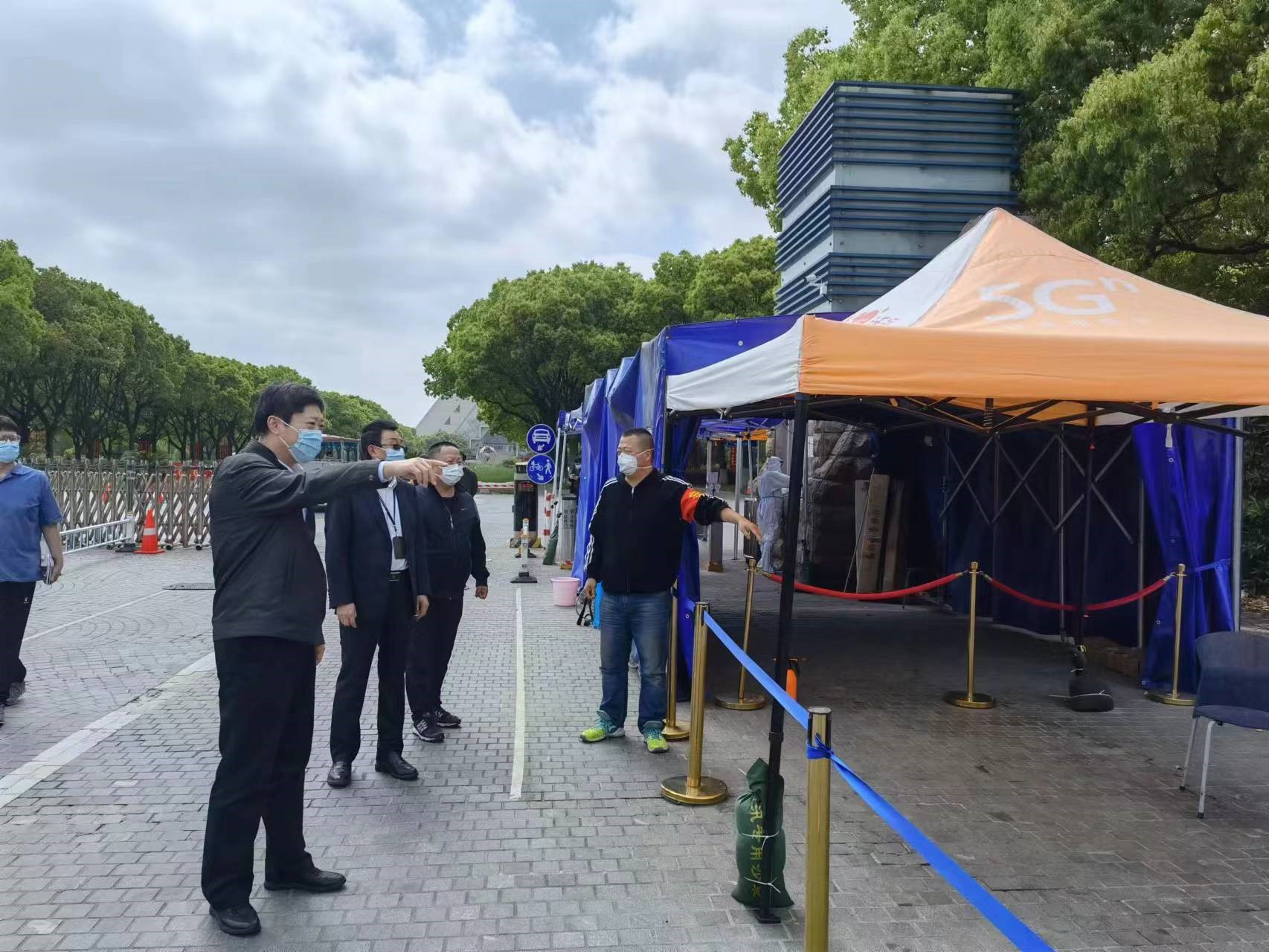 4月24日下午,校党委书记李江,副校长姚秀平在松江校区深入校园一线巡检督查疫情防控工作,慰问在岗工作的教职员工和学生志愿者。党委办公室、校长办公室、学生工作部(处)、研究生工作部、保卫部(处)、资产与实验室管理处、后勤实业发展中心、团委等部门负责人陪同巡检督查。