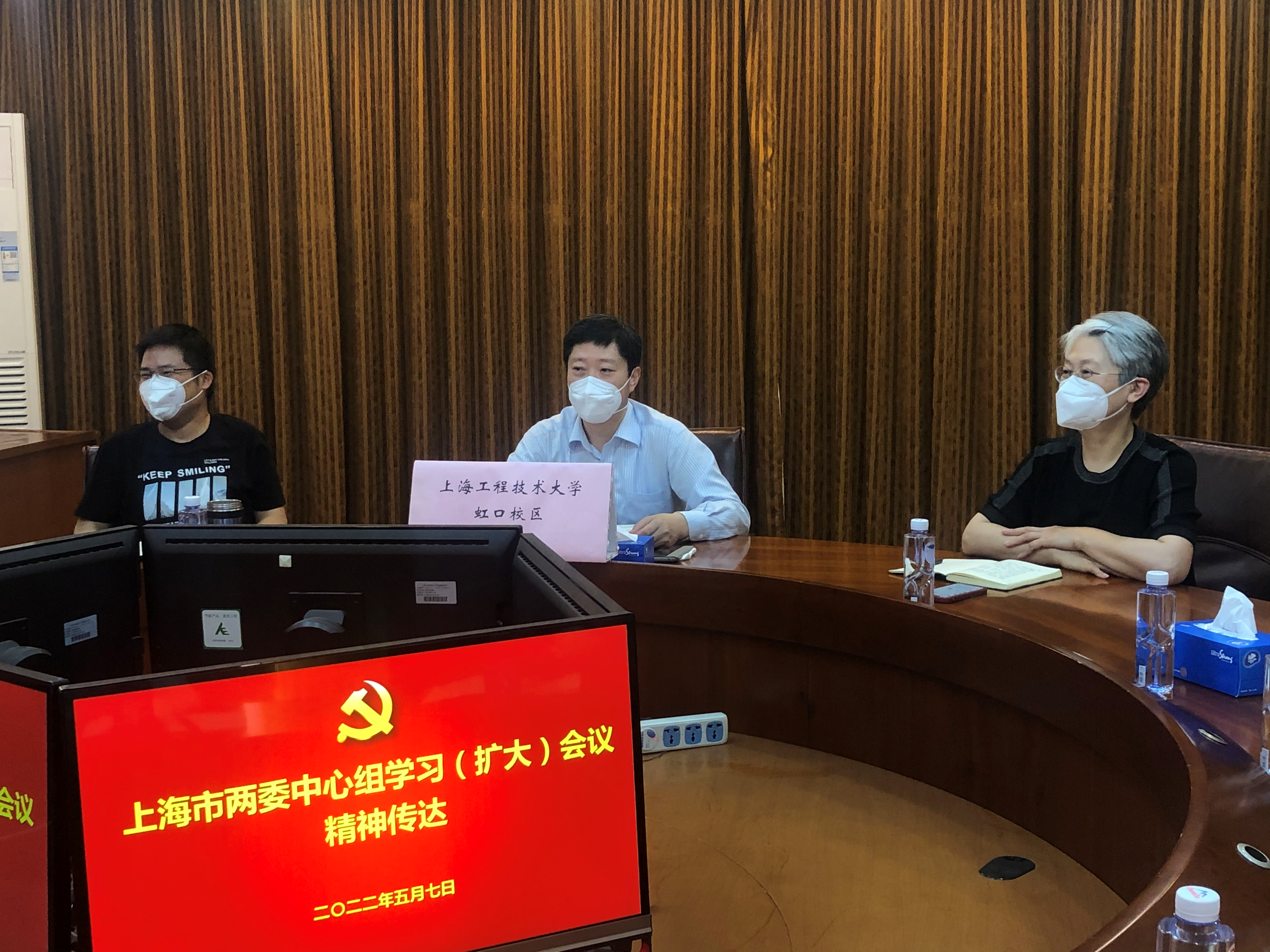 5月7日,校党委书记李江第一时间于下午4点在虹口校区召开现场办公会议,学习传达中共上海市教育卫生工作委员会和上海市教育委员会中心组学习(扩大)会议精神。校党委书记李江主持会议并讲话。俞涛校长主持召开松江、长宁两个校区视频会议,同时传达上海市两委中心组学习(扩大)会议精神。