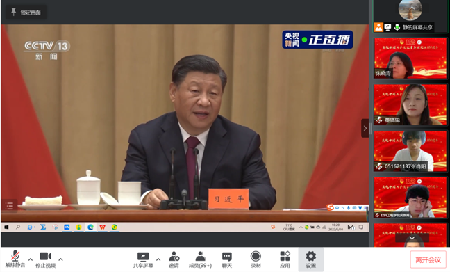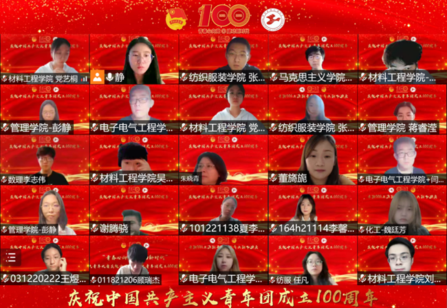 上海工程技术大学党委副书记、副校长朱晓青与我校广大团员、团干部、学生会工作人员、青年学生等共同收听收看活动直播,认真学习习近平总书记重要讲话精神,共庆中国共产主义青年团成立100周年。