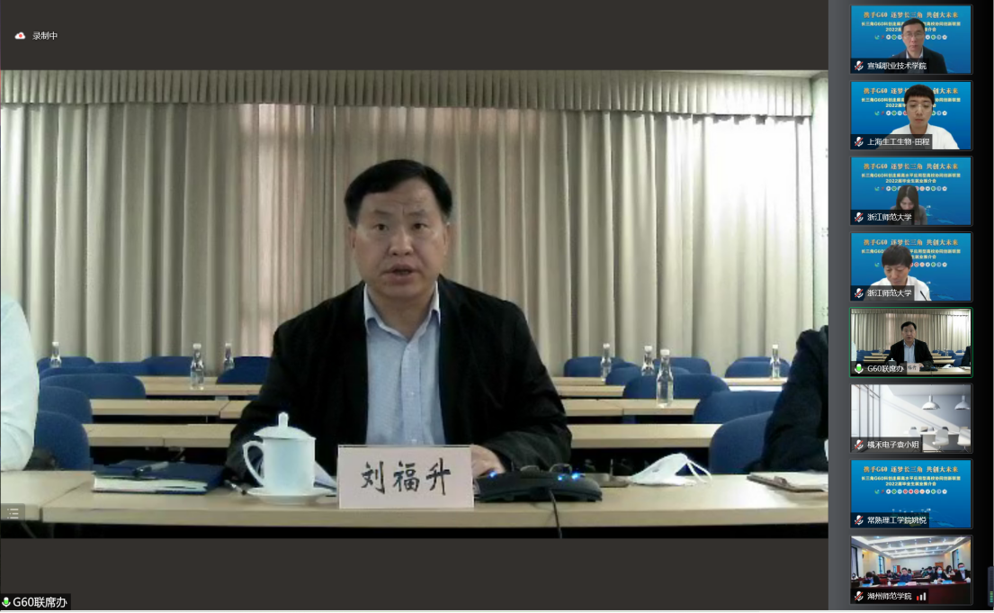 刘福升副区长代表主办方向参会领导、嘉宾以及老师们、同学们表示热烈的欢迎和诚挚的感谢,并对长三角G60科创走廊高水平应用型高校协同创新联盟高校提出了殷切希望。他表示,G60科创走廊联席办公室将一如既往的搭好平台、做好服务,助力高校和企业更加紧密高效地合作,助力更多的优秀学子融入长三角G60科创走廊,希望有更多的优秀企业同高校联盟协作,坚定信心,驻足长三角G60科创走廊,依托全国统一大市场,抢抓长三角区域高质量发展新机遇,努力把自身打造成为行业的标杆,为中国制造迈向中国创造做出更大的贡献。