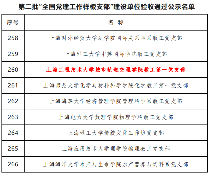 我校电子电气工程学院党委通过“全国高校党建工作标杆院系”的验收;城市轨道交通学院教工第一党支部通过“全国高校党建工作样板支部”的验收。