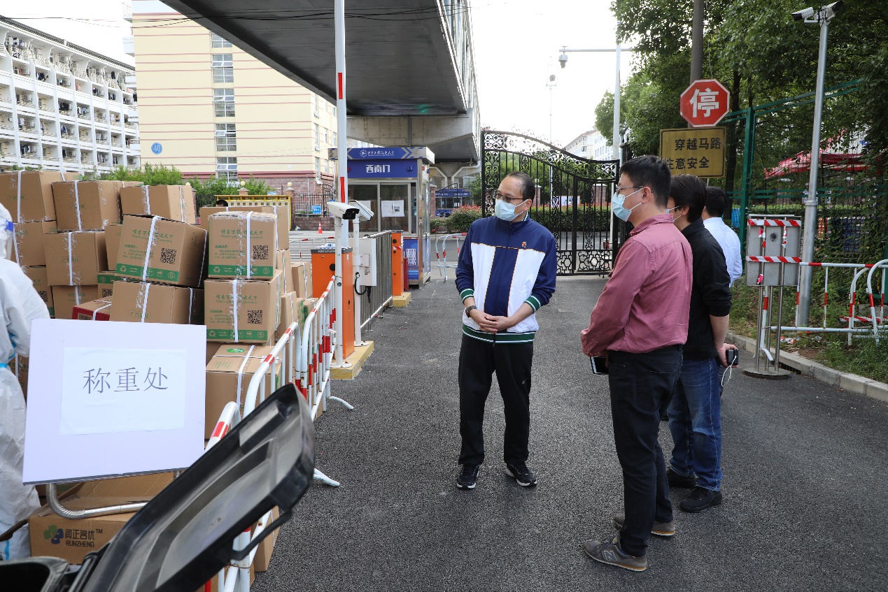 在大件快递寄递服务点,俞涛校长一行实地检查了寄件场地、通道设置和防疫闭环管理工作,听取有关情况介绍,并与现场学生进行交流。俞校长指出,为学生提供大件快递寄递服务是配合离校返乡工作的重要保障,必须做好现场防疫管理,为离校学生提供暖心、安心服务。