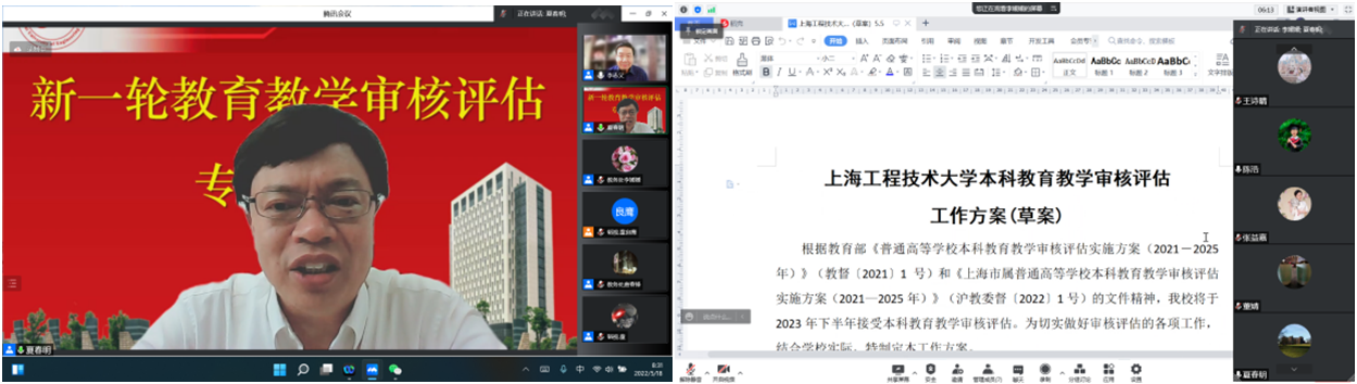 教务处已陆续开展新一轮审核评估的前期准备工作:第一时间解读了上海市教委的评估方案,分解评估指标体系;排摸核心指标数据找短板,对标兄弟高校找差距;同时制定学校评估工作方案,明确工作内容和关键时间节点;邀请专家解读新一轮评估工作,即将开启全校动员和实施阶段。