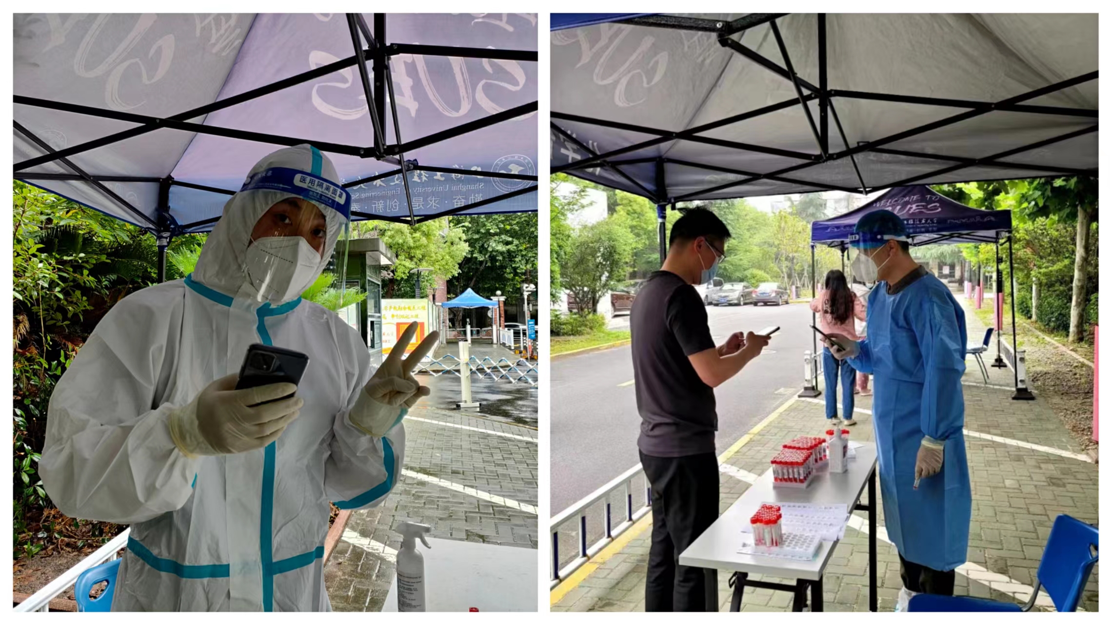 近期,在校区进行核酸采样的“大白”,不仅亲切、自然,还透着一股子“熟悉”劲儿。为配合同学们离校,延长核酸检测有效时间,学校特别开设了凌晨核酸检测专场。高聪毅老师化身“大白”,从“战疫记者”、校园工地秩序维护等岗位“一键转换”而来,有需要时日夜连轴工作,但防护服对于“高”老师而言并不贴身,多数情况下为方便穿脱,他经常赤脚上阵,硬核守护。“程园人都在以自己的方式守护着校园,这段特殊的志愿者经历也将成为我青春汗水过后的美好回忆。”高聪毅老师说。他的事迹并不惊天动地,但奉献求是的坚守可敬可赞。学校核酸志愿者的召集通知一经发布,越来越多的教师争先恐后地加入进来,贴试管标签、准备咽拭子、扫检测二维码并核实姓名,“哪里需要我们就到哪里!”他们坚定的承诺声响彻耳畔。