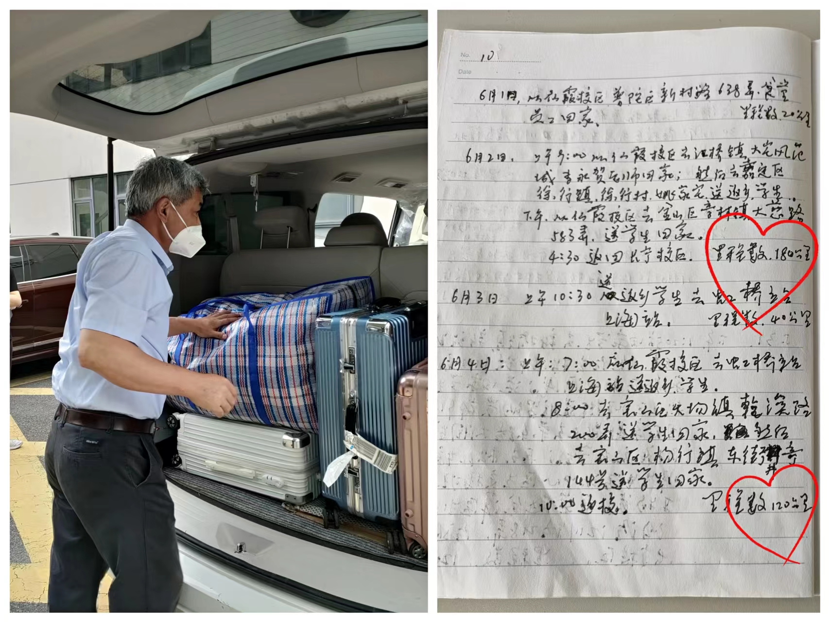 “战疫情”“云课堂”在每一个SUESer的人生中烙下了独特的印记。随着疫情形势的好转,同学们返乡归家热情高涨。为扎实做好学生离校返乡工作,长宁专班坚持实字为要,根据每一位学生的行程时间,提供“私人定制”服务,派专人专车将每一位离校学生平安送达车站或上海家中,无论是披星戴月,还是风雨兼程,靳师傅作为长宁校区唯一一位驾驶员,出车至今已达四千多公里。为了学生安全离校,靳师傅好几次需要在凌晨三四点出车;遇到大雨倾盆,靳师傅不放心把学生放在事先约定的家长接送点,坚持驱车绕道把学生送到家,也把程园人的温暖送到家。有时一天下来,饭来不及吃一口,又着急询问下一趟出车安排。