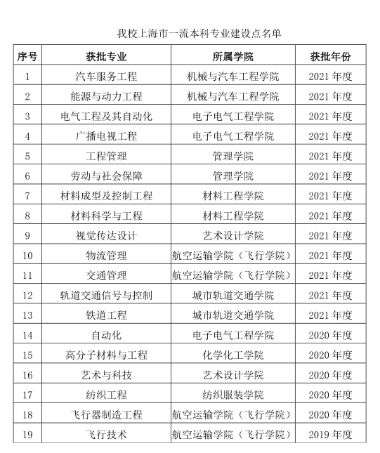 近日,教育部办公厅印发《关于公布2021年度国家级和省级一流本科专业建设点名单的通知》(教高厅函〔2022〕14号),公布了2021年度国家级和省级一流本科专业建设点名单,我校新增6个专业入选国家级一流本科专业建设点,新增13个专业入选上海市一流本科专业建设点。