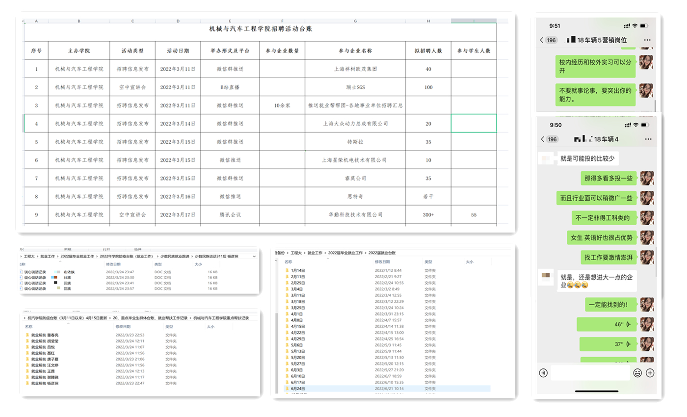 学院坚持精准施策、靶向指导,通过键对键、面对面、点对点等方式全面排摸毕业生就业意愿,导师与辅导员齐发力,为每位毕业生建立台账并及时更新,精准把握每位学生的就业意愿信息,做到就业“一人一档”“一生一策”“一日一更”。学院就业辅导员为毕业生开展24h就业指导服务,指导网申与面试,将学生精准内推至公司,并实时跟进面试进度和签约困难点,协助企业和学生完成网签。在疫情期间,面对学校封控和快递停摆的问题,学院辅导员化身“快递员”“跑腿小哥”,自驾车前往单位帮助学生完成签约。