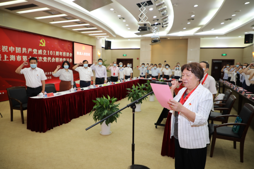 会上,在场党龄最长的党员黄勤奋带领与会党员共同重温入党誓词、回望入党初心。学校党员在全国各地以视频集锦的方式重温入党誓词,向党宣誓。