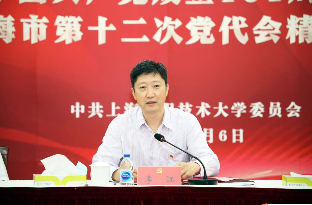 李江书记带领大家回顾学习了市第十二次党代会报告总结的上海市过去五年取得的成绩和今后五年的发展目标。他指出,要把学习宣传贯彻市第十二次党代会精神作为当前和今后一段时间的重要工作之一,要深刻领会报告精神,为学校事业新发展寻找良机、先机。就推动学校党的建设和事业发展再上新台阶,他提出四个方面的要求。第一,要加强党的全面领导,坚持以习近平新时代中国特色社会主义思想武装头脑、指导实践、推动工作。要坚持把“党对教育事业的全面领导”置于办学治校的首要地位,不断提高政治判断力、政治领悟力、政治执行力。要坚持落实“第一议题”学习制度,把学习传达、贯彻落实与推进工作紧密结合起来,真正将其转化为干事创业的行动指南,转化为党的建设和事业发展的实际行动。第二,要对标新形势、新任务、新要求,要深入贯彻《中国共产党普通高等学校基层组织工作条例》,进一步强化各级党组织的政治功能,发挥上下贯通、执行有力、运行有效的组织优势,推动基层党建工作“见人、见事、见精神”,促进基层党组织全面进步、全面过硬,把党组织的政治优势转化为办学治校的根本保证。第三,要坚持聚焦内涵建设,深刻把握当前学校事业发展面临的机遇与挑战,提高站位、强化担当、落实责任,深入实施“三大发展战略”,以学科建设为龙头,坚持立德树人、坚持突破重点、坚持优化布局、坚持绩效导向,持续推动学校转型发展。第四,要扎实做好巡视整改,推动全面从严治党向纵深发展。把巡视“回头看”整改作为当前严肃的重大政治任务抓紧抓实,以问题整改为重要契机,深刻剖析发展中存在的问题、研究发展路径。坚持做到“严”字当头、“实”字用力,确保真改实改、取得实效。