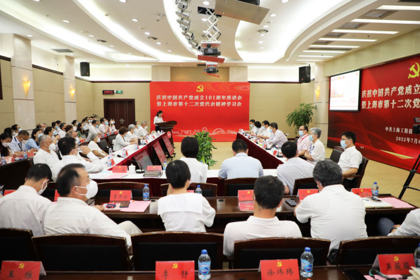 7月6日,学校在松江校区图文信息中心第三报告厅召开庆祝中国共产党成立101周年座谈会暨市第十二次党代会精神学习会。学校党委书记、副书记出席会议,“光荣在党50年”党员代表,党务部门负责人,各二级党组织书记、组织员、党员代表等参加了会议。会议由学校党委副书记史健勇主持。